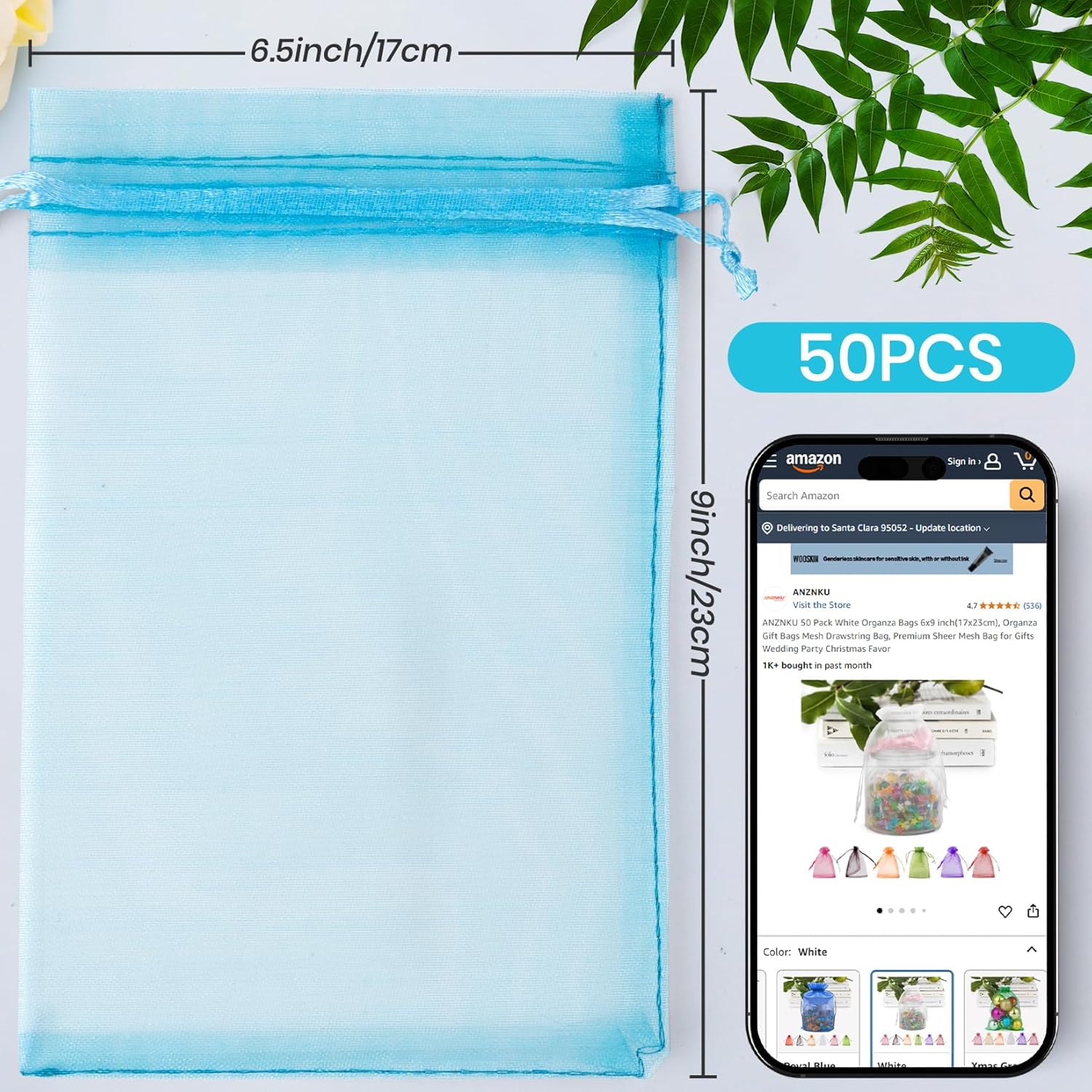 • Included Components : 50 Pcs Lake Blue Organza Bags 6.5x9 Inch