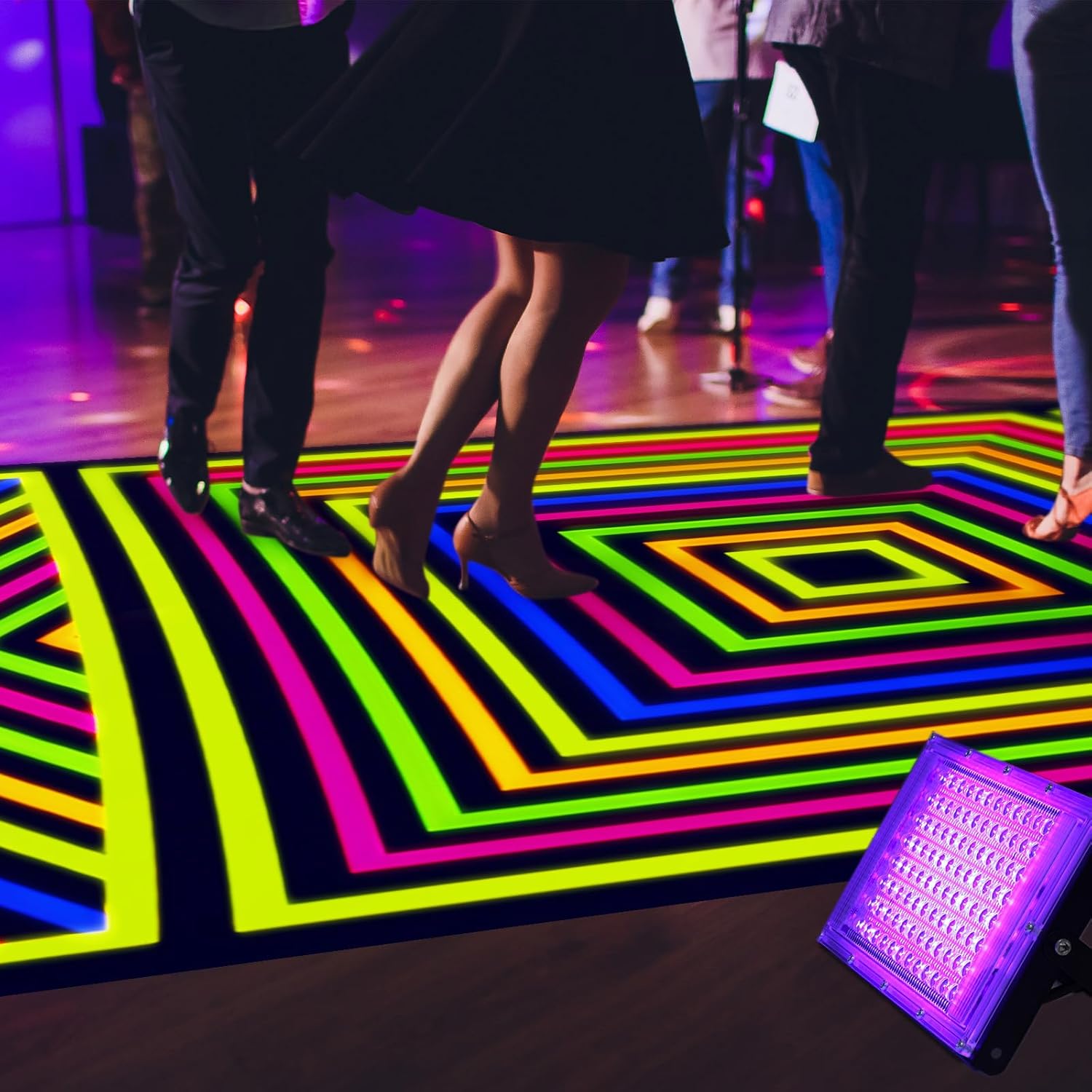 • Bright Fluorescent Color: the light up dance floor shines brightly under UV blacklight, with fluorescent orange, fluorescent blue, fluorescent green, fluorescent yellow, and fluorescent pink staggered against each other, making it simple to draw the attention of others; Please note that it will have the effect of fluorescence, but it needs to be irradiated by purple lamp to have the effect; If it is not irradiated, it is a normal pattern