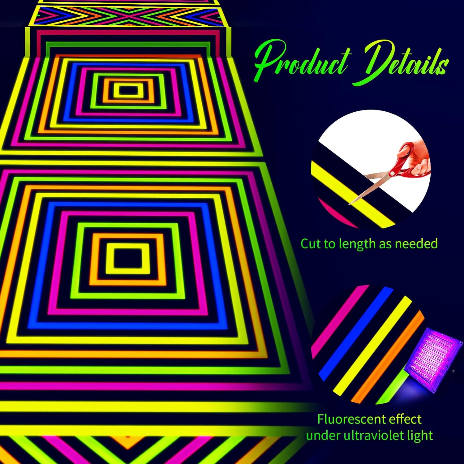 • Wide Application: the colorful carpet runner may be utilized in a variety of situations, including the neon theme party, vintage 80s 90s themed party, birthday party, glow in the dark themed party, carnivals, and stage performances, illuminating the night and dancing