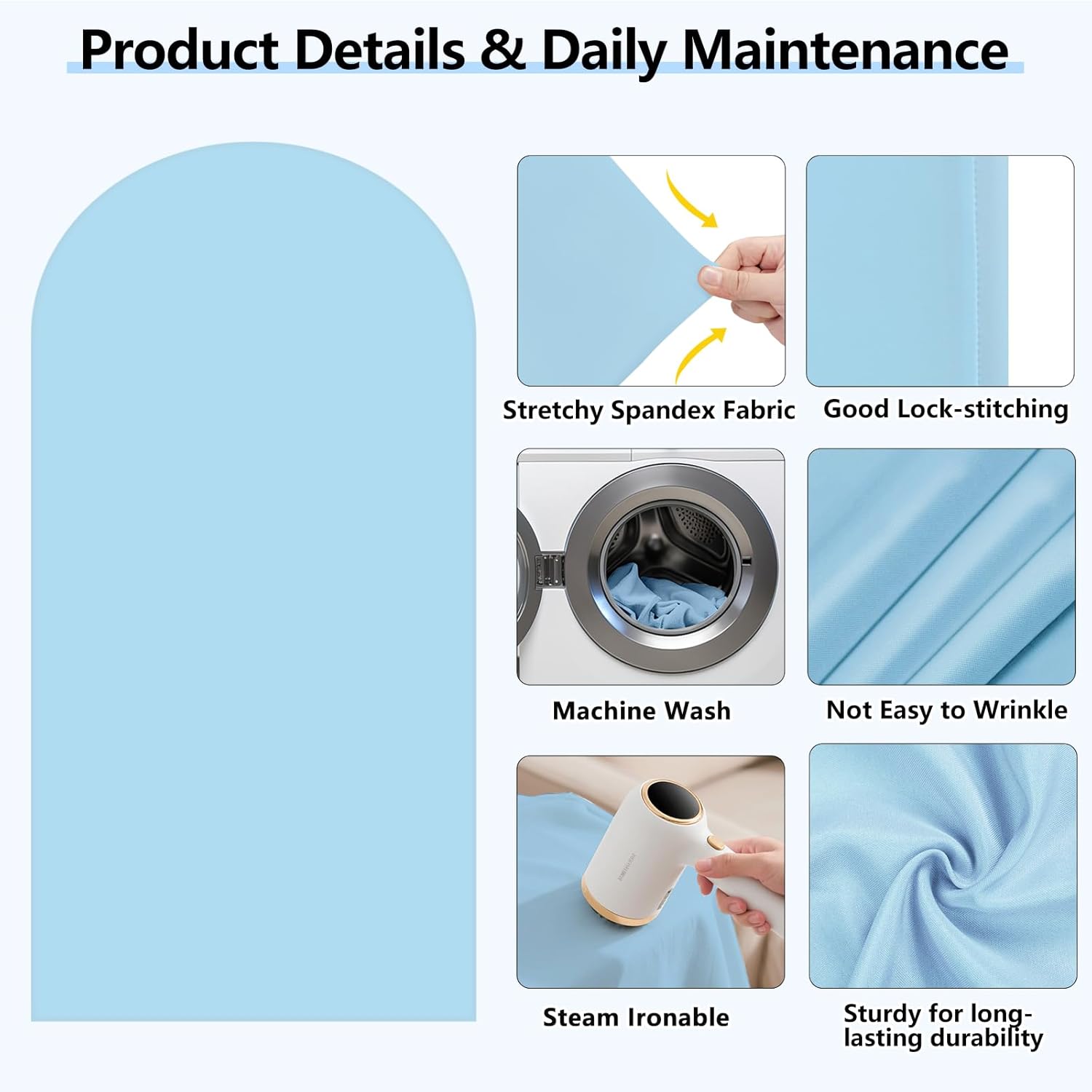 • Transform Your Space: The blue spandex arch cover can add florals, balloons and party decorations, ideal for setting up a balloon arches, a photo booth, baby shower arch backdrop, wedding arch cover, for creating a sophisticated and eye-catching display