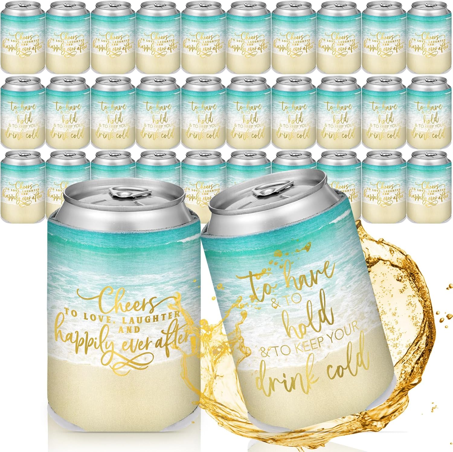 50 Pieces Beach Theme Wedding Can Cooler Bulk Engagement Party Favors for Guests Cheers to Love Laughter and Happily Ever After Rehearsal Dinner Decorations for Wedding Bridal Party