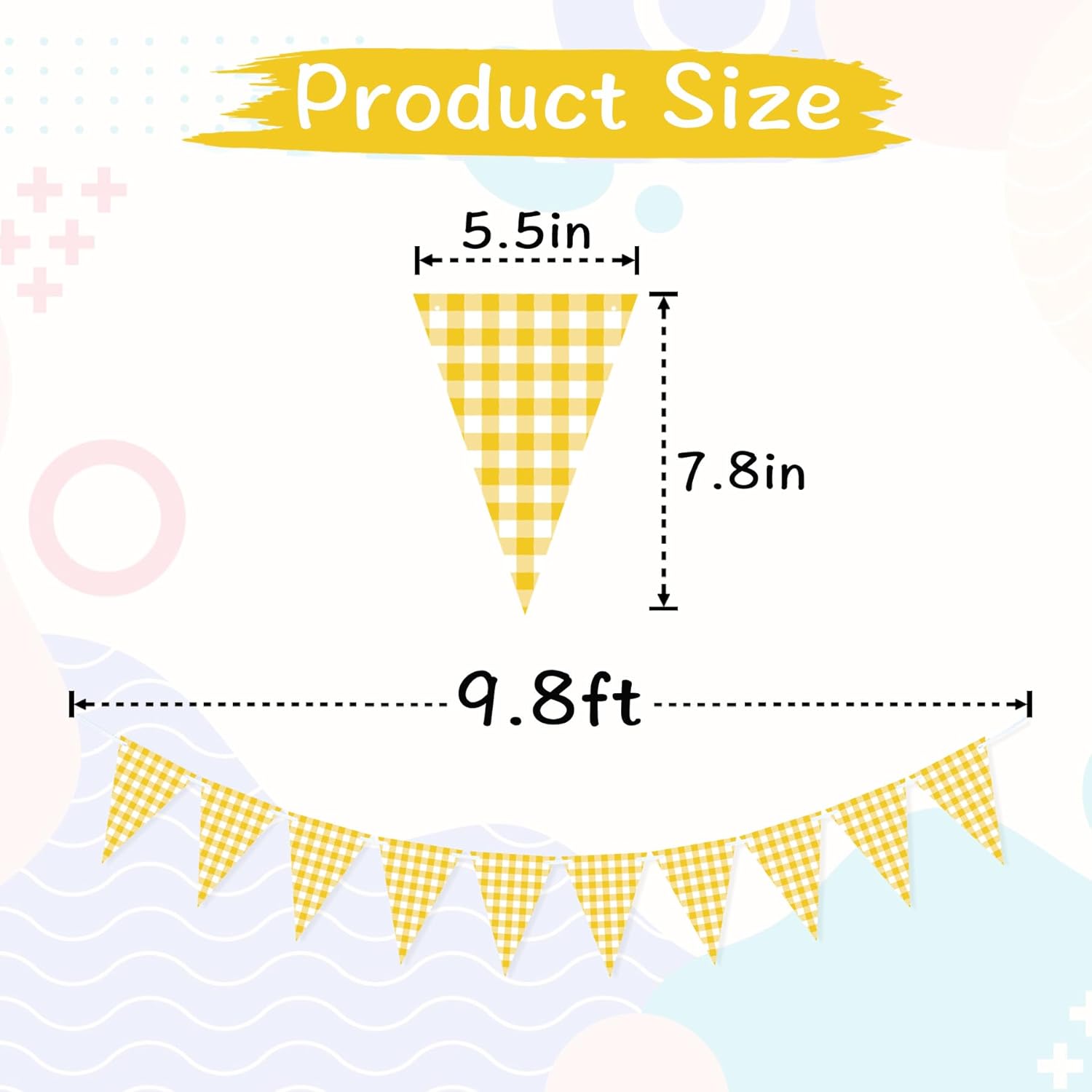 • Package includes 2pcs yellow gingham banner in classic yellow and white grid pattern, features a yellow theme to add a fun pop of color to every of your gatherings, comes pre-strung and distance adjustable that you can space them to the perfect site you like