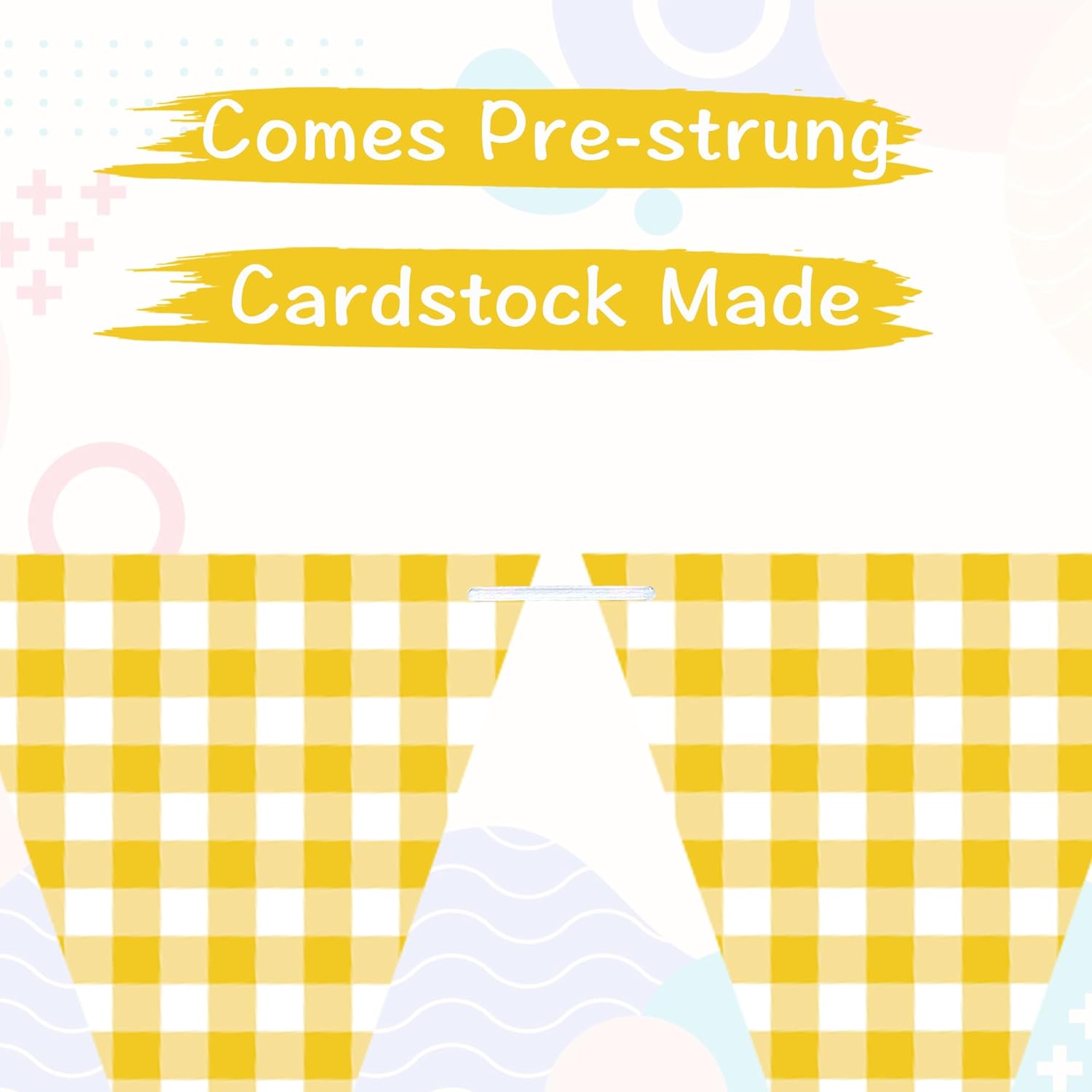 Yellow Gingham Banner for Picnic, BBQ Themed Party Decorations, Yellow and White Checkered Bunting Flag Garland for Lemon Wedding Baby Shower Birthday Party Supplies