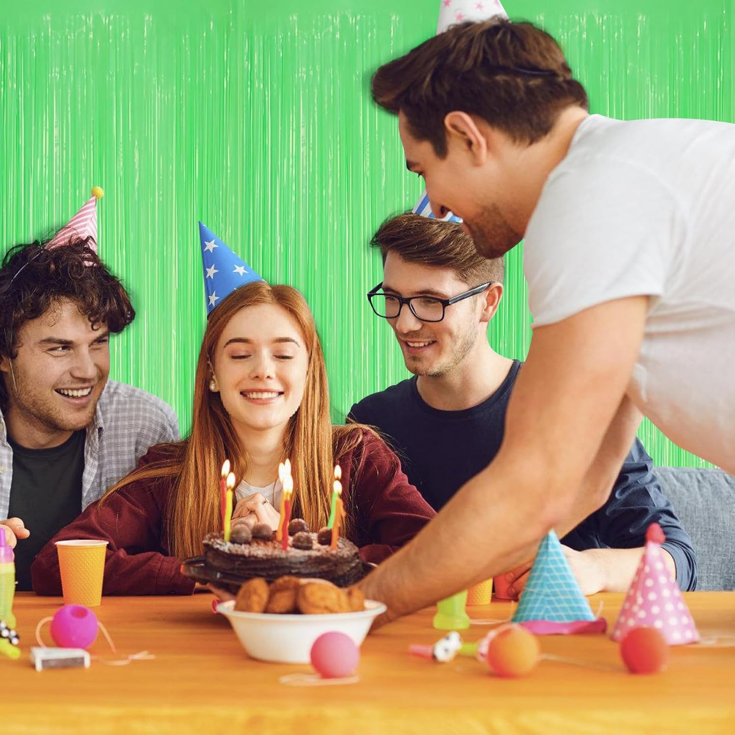 10 Pack Green Foil Curtain Backdrop 3.2ft x 8.2ft Macaron Tinsel Foil Fringe Curtains Streamer Photo Booth Backdrop for Birthday Party Baby Shower Engagement Wedding Holiday Decoration (Macaron Green)