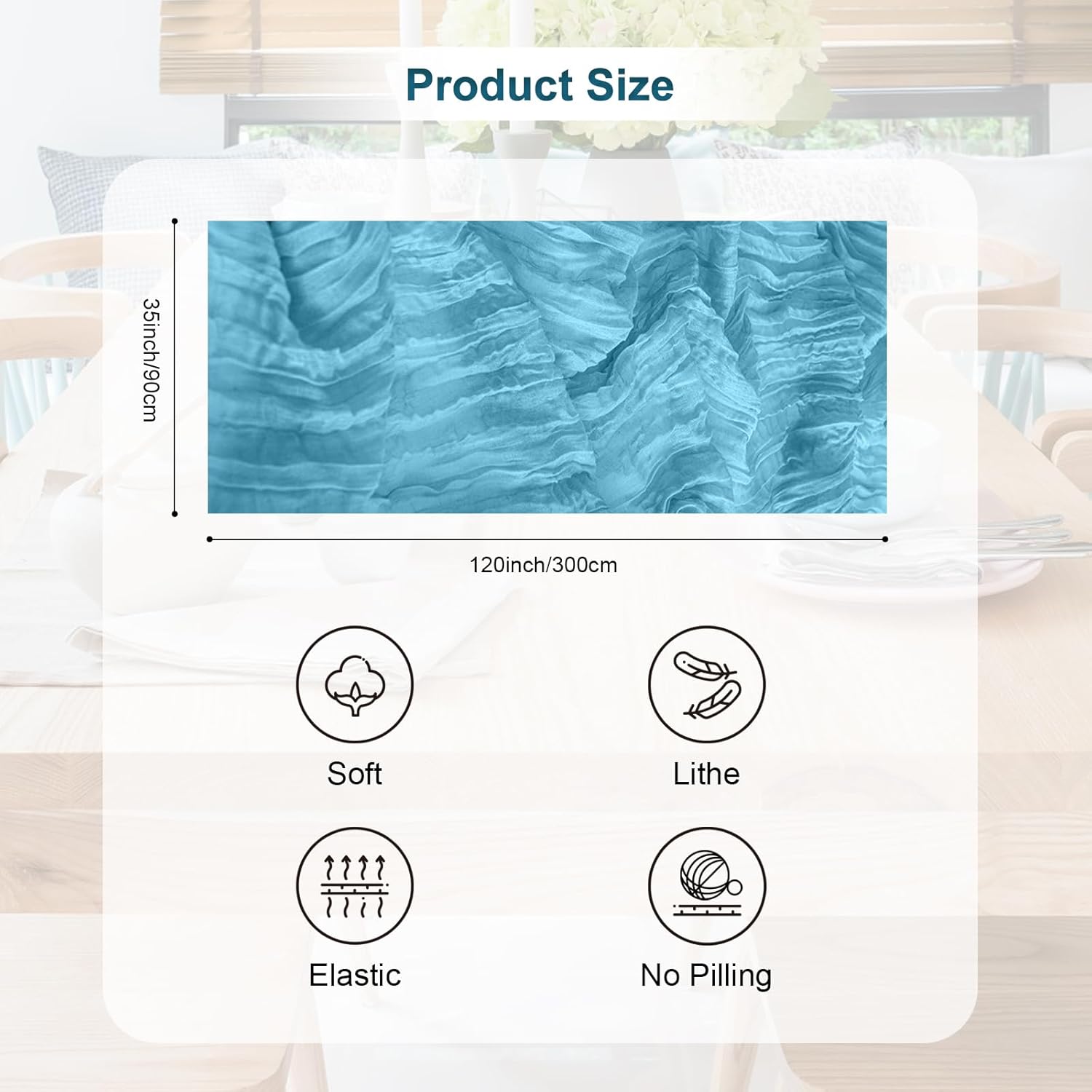 • Premium Materials: Our table runners are crafted from high-quality cheesecloth and gauze. The baby blue cheesecloth table runner has good softness and breathability, while the gauze table runner offers a delicate and elegant texture. These materials are carefully selected to ensure durability and a luxurious feel, making your table look and feel extraordinary.