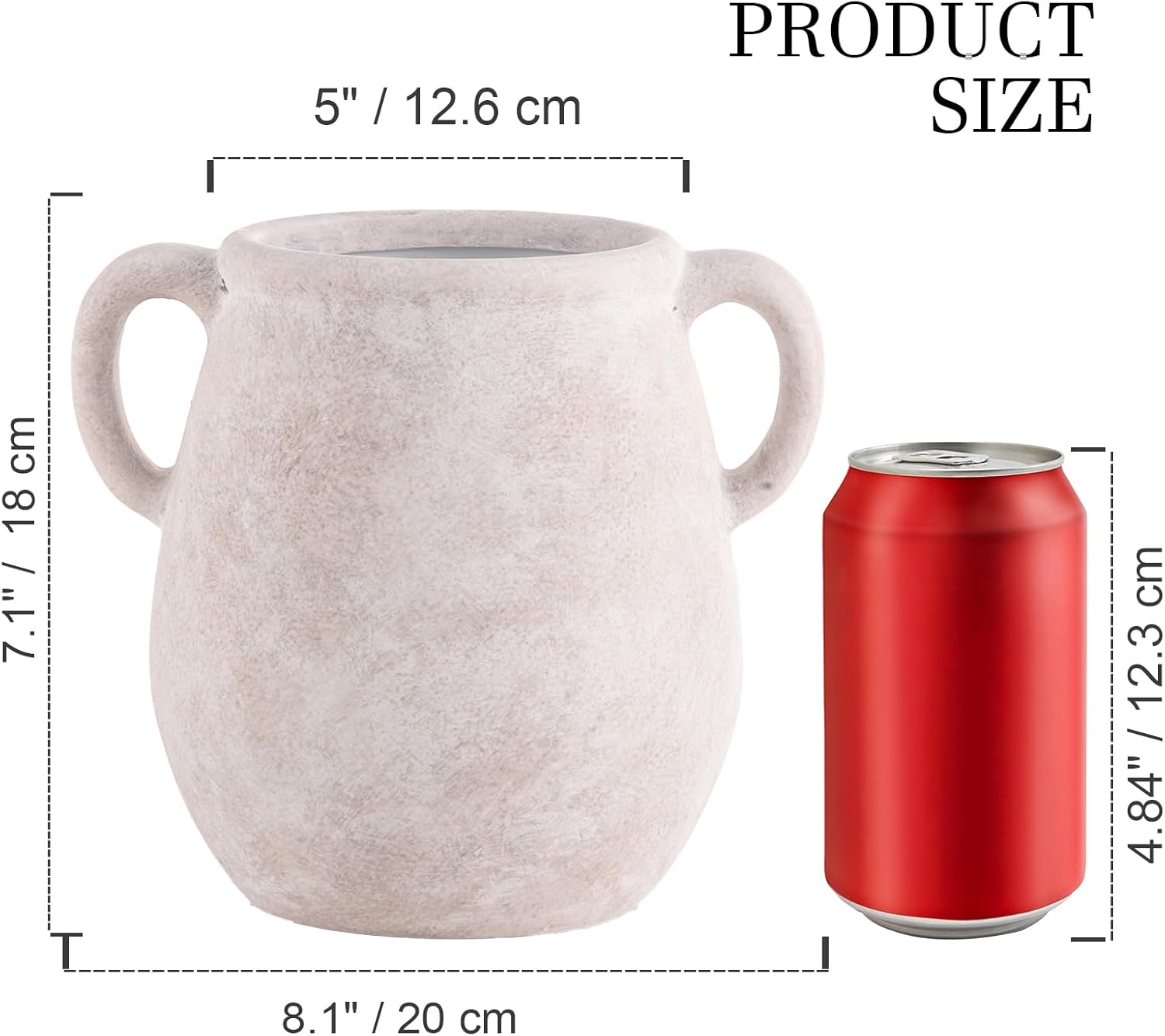 • 【Handcrafted Weathered】The exterior of white ceramic flower vase was painted by hand in a modern yet rustic glaze, nice color that goes with any color decor.It effortlessly blends in with existing furniture and accessories, adding a timeless charm and harmonious look to your space.(Warm Tips: The surface effect is purely handmade, and each product is not exactly the same.)