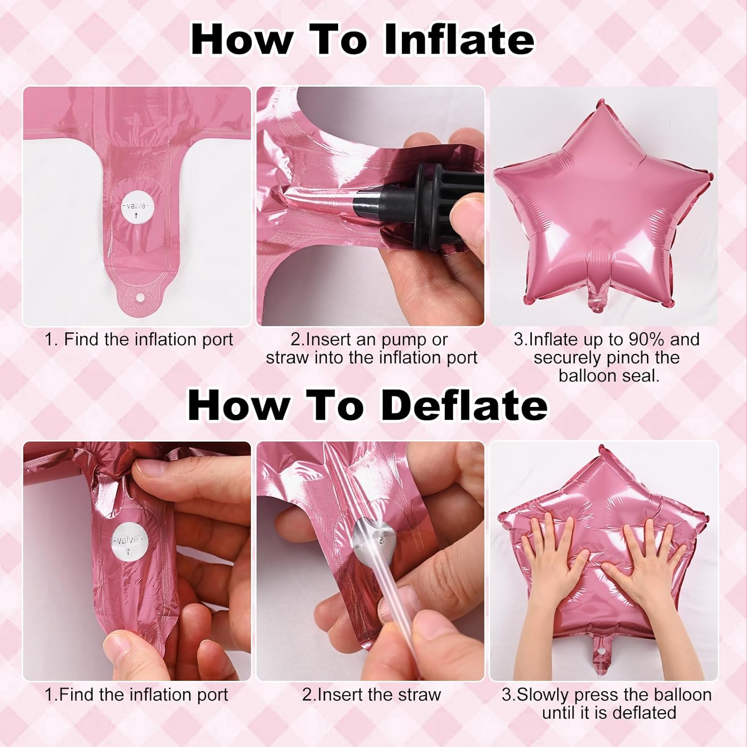 • πŸ’β™»οΈγ€Rich & Reusable 18" Foil Balloons】: The rich foil balloons enhance the design sense of the decoration. They can be reused according to the instructions, bring a festive and fun atmosphere to any occasion, time and time again! πŸŽˆπŸŽ‰οΌˆPlease place the hand pump under the transparent protective film at the balloon inflation port to inflate. After the activity, insert the attached straw under the protective film and gently press to deflate it for reuse.)