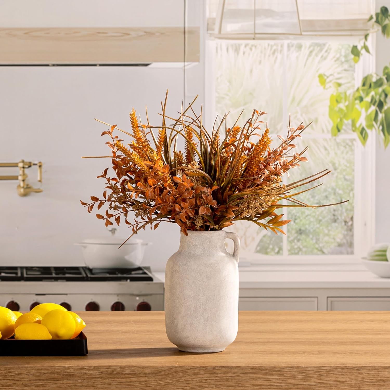Ceramic Flower Vase Home Decor - 9.7 inch Large White Rustic Table Flowers Vases Living Room Bedroom Plant Decoration Farmhouse Vintage for Kitchen Shelf Office Coffee Dining Desk House Women