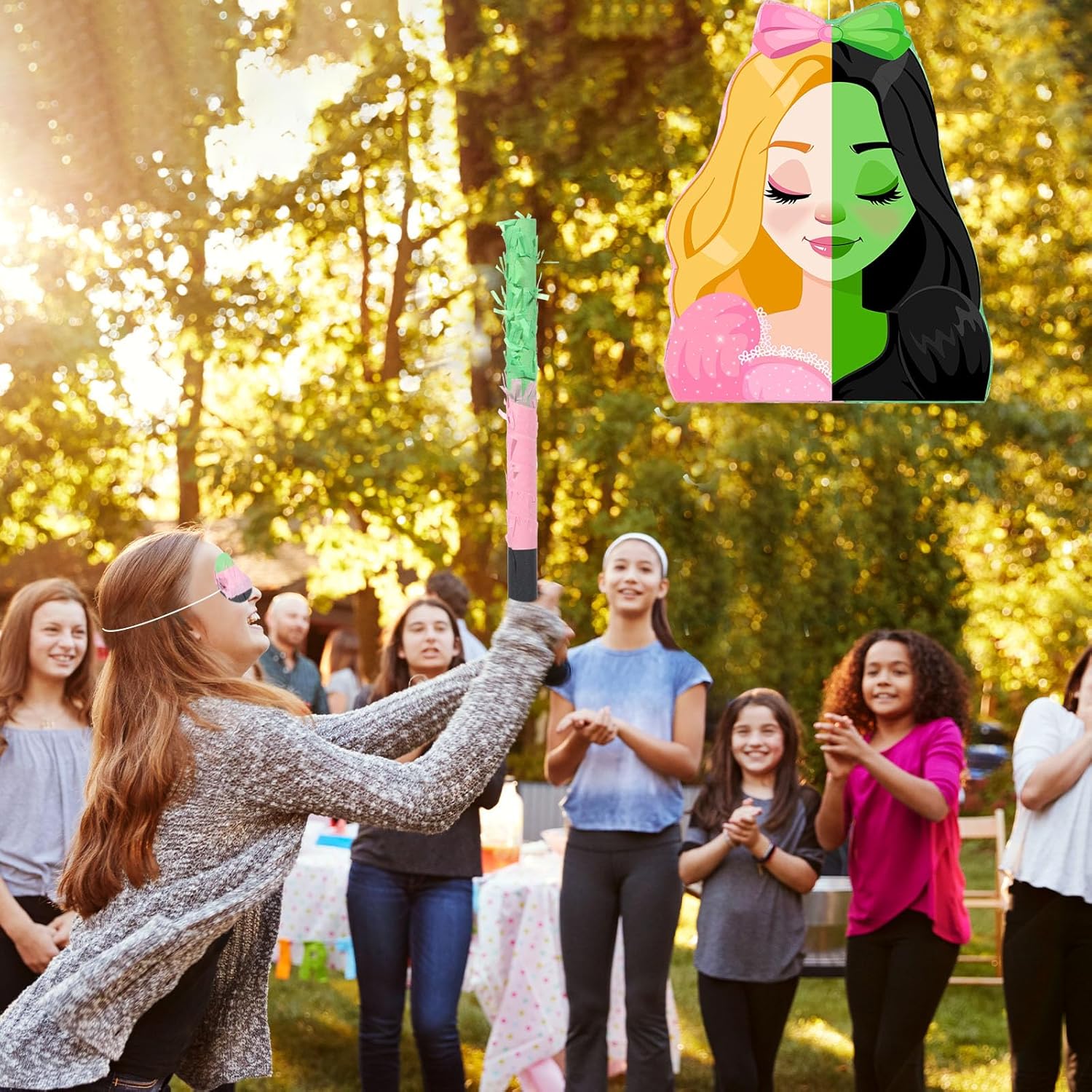 Kasyat Witch Princess Piñata Party Game Set Halloween Witch Piñata with Bat Stick Blindfold Pink Green and Black Party Decor for Halloween Birthday Baby Shower Game Supplies Decor (Movie)