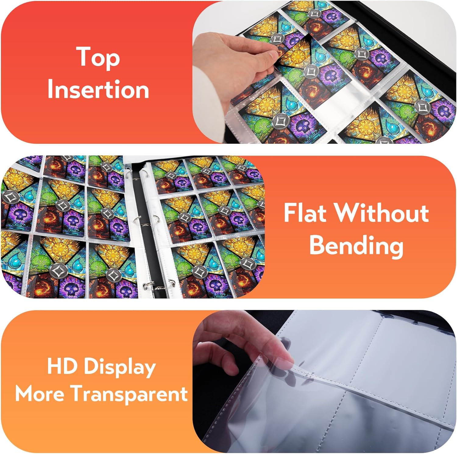 • Large Capacity:This Trading Card Binder with 50 Double Sided Pages,9 pocket per page,holds up to 900 cards.Provides plenty of space to keep all your cards organized,not disorganized