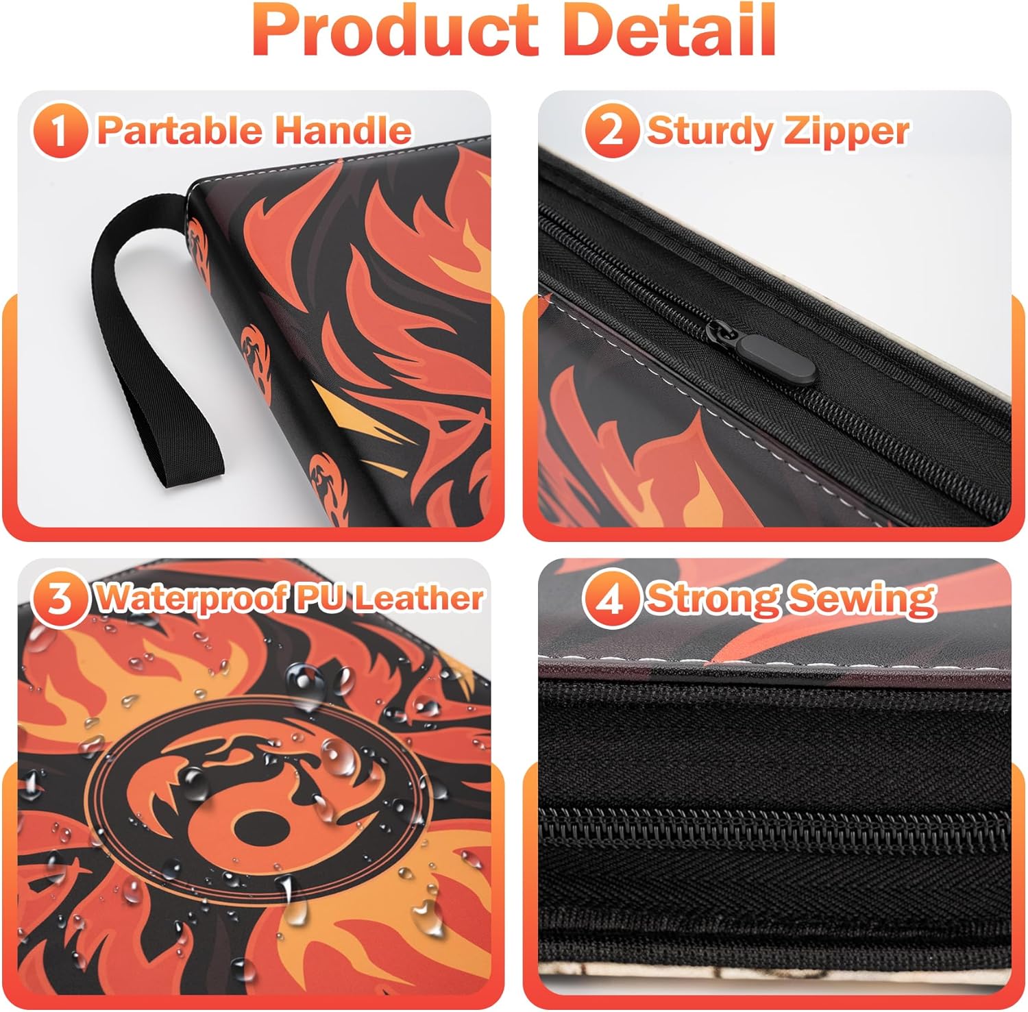 • Made To Last :our carrying case binder is comfortable to touch and hold in hands. The card binder for trading cards is made of premium PU leather, Water or raindrops won’t seep through. Closed zipper design provides multiple protections so that the inner page or cards does not fall.Handle straps design can carry around to show off cards to your friends