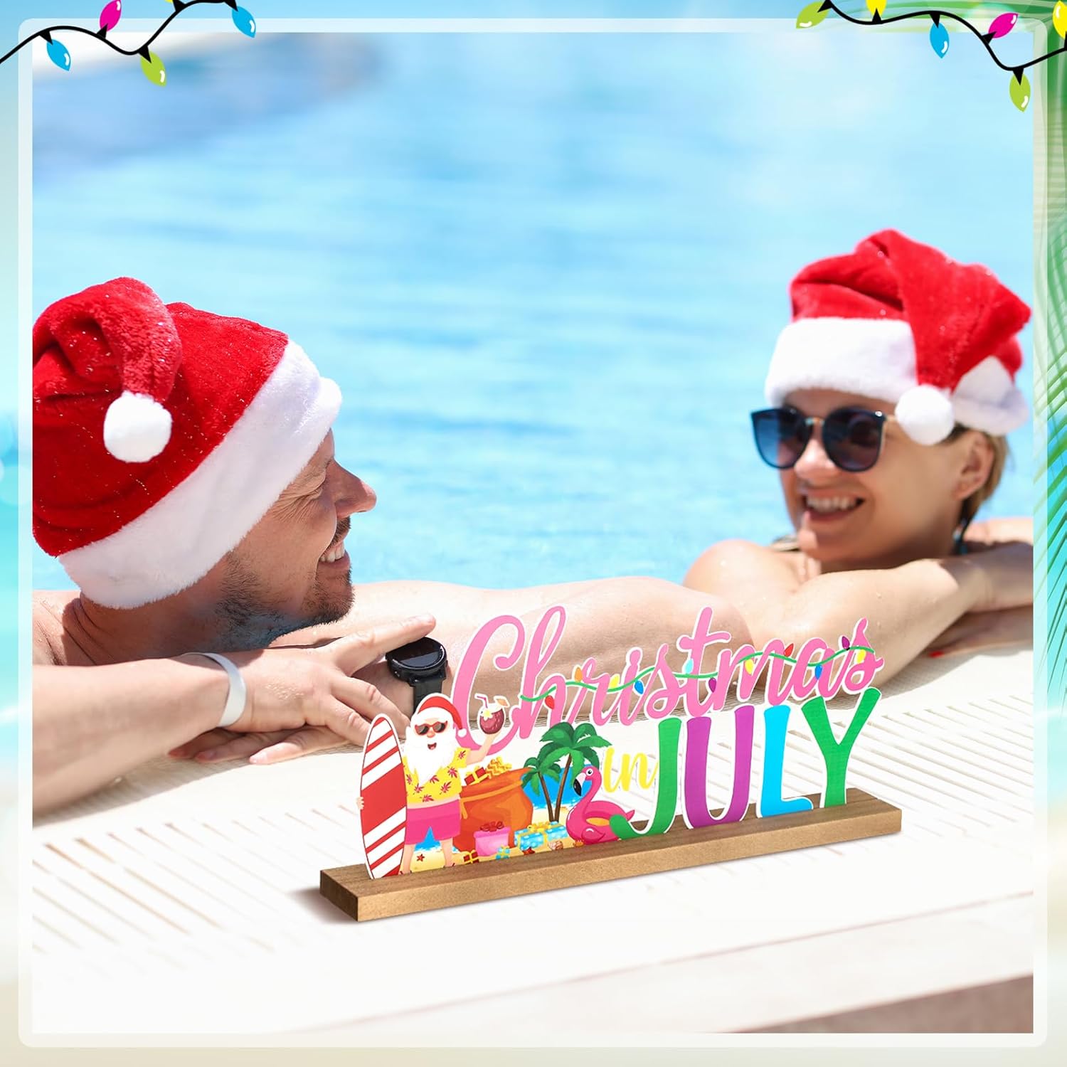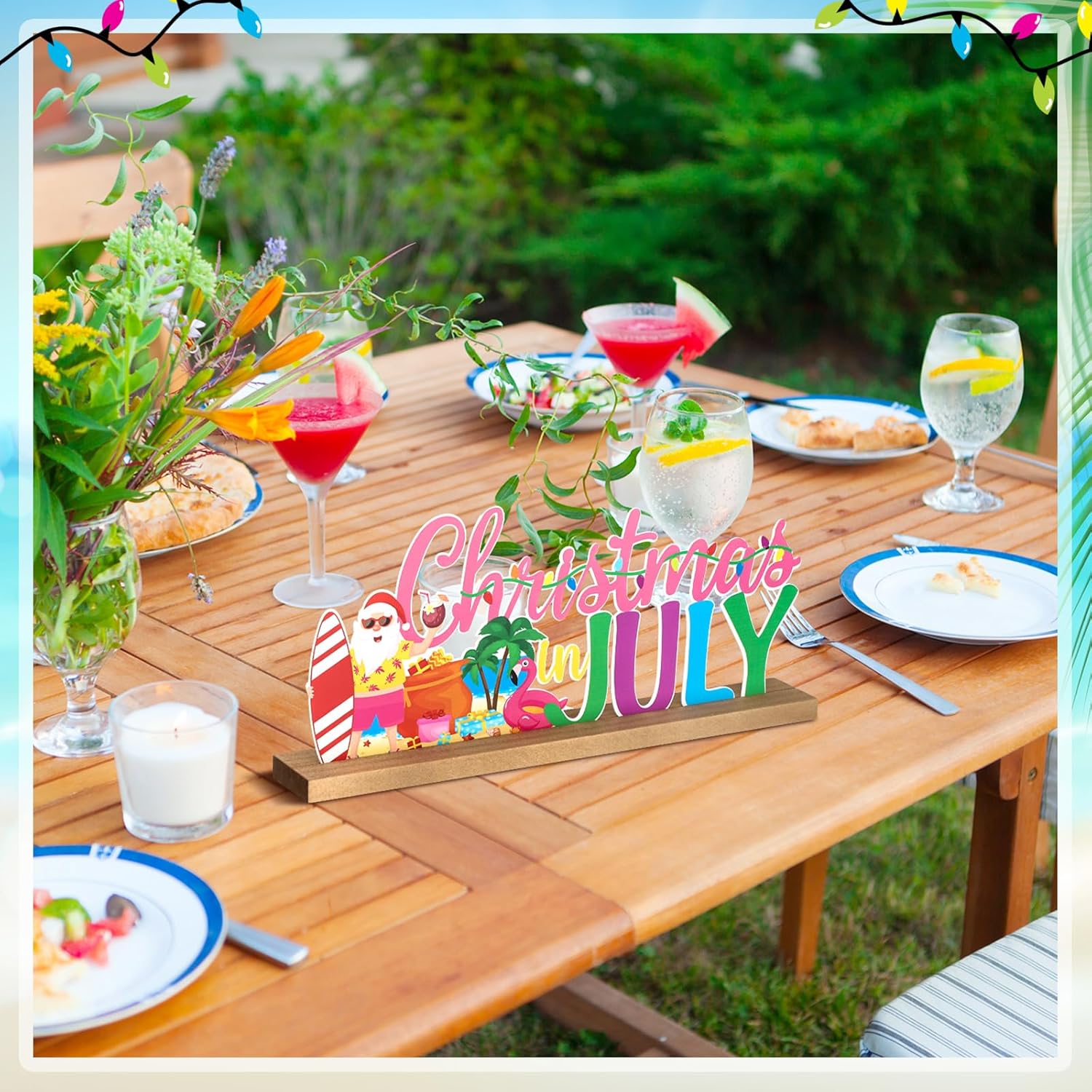 • the Package Includes: you will receive a Christmas In July table decorations with a wooden base; You will need to insert a metal sign into the wooden base, which will stand firmly and reliably, adding eye catching colors to your home