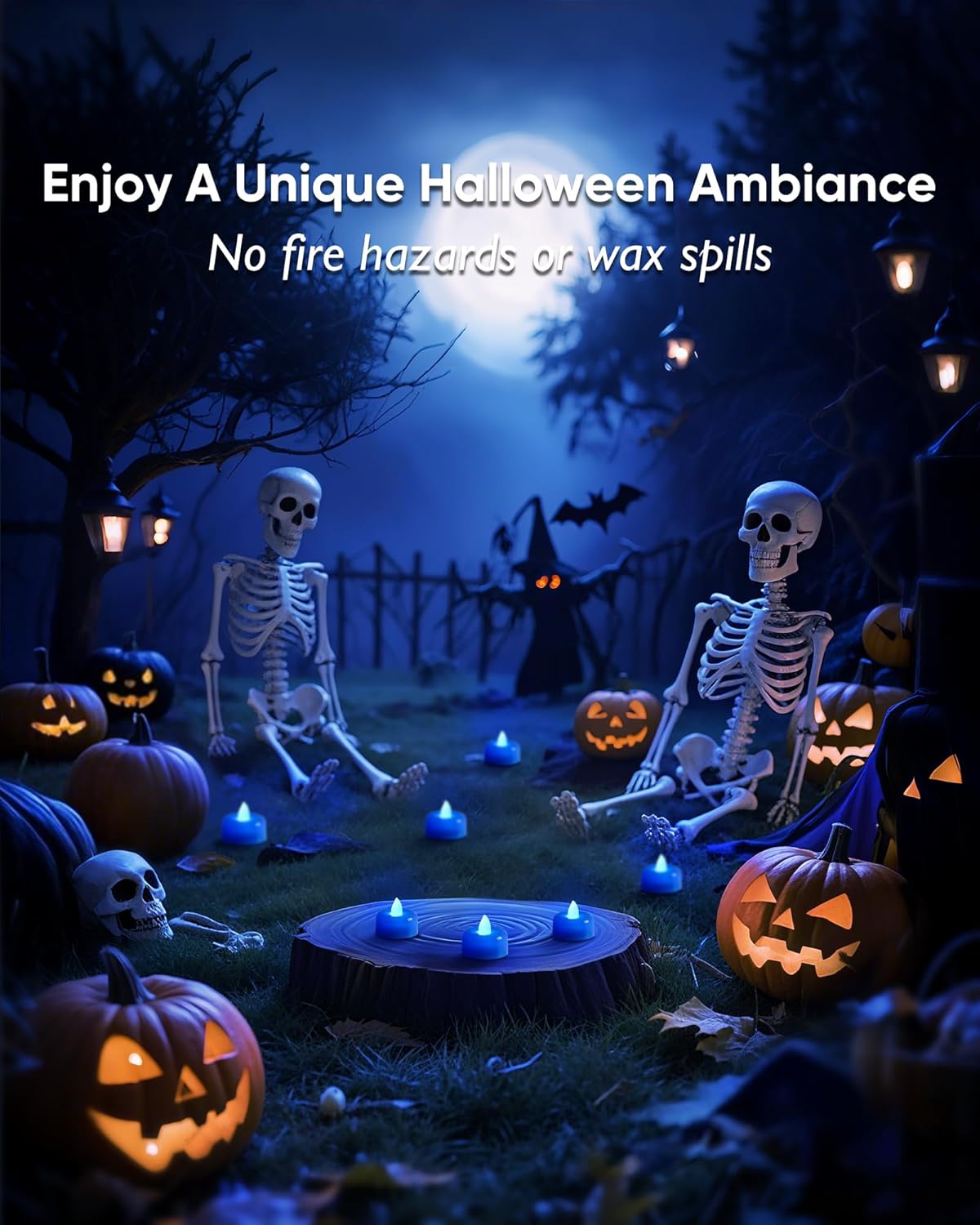 • Create Atmosphere: Create a magical atmosphere with our blue flameless candles! The charming tea lights add a touch of mystery to your party or holiday gathering. Enjoy the realistic wax-like appearance and feel that will leave you amazed