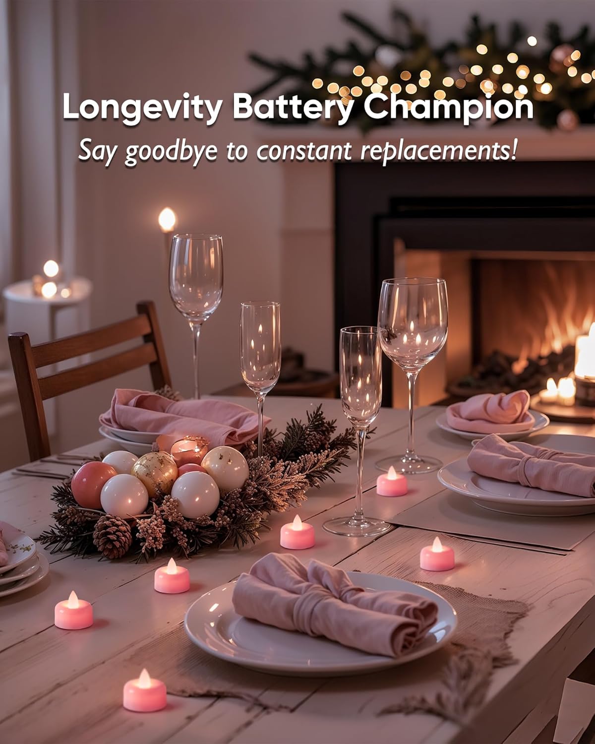 • Best Decoration: Emitting charming pink white light, these battery tea lights add a romantic touch to any setting. Ideal for pink party decor, weddings, dates, Valentine's Day, proposals, table centerpieces, and special nights