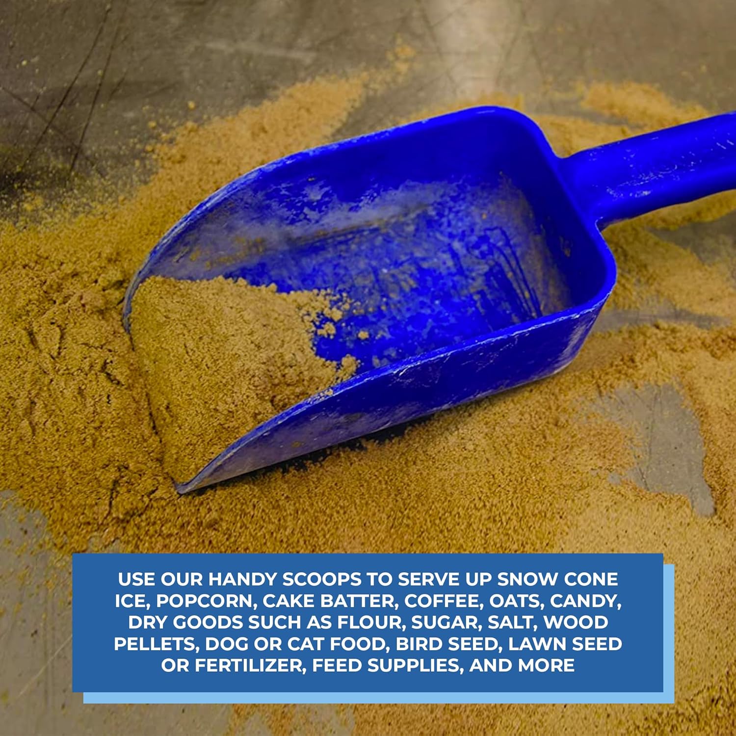 • MULTIPURPOSE AND EASY-TO-USE: Use our handy scoops to serve up snow cone ice, popcorn, cake batter, coffee, oats, candy, dry goods such as flour, sugar, salt, wood pellets, dog or cat food, bird seed, lawn seed or fertilizer, feed supplies, and more