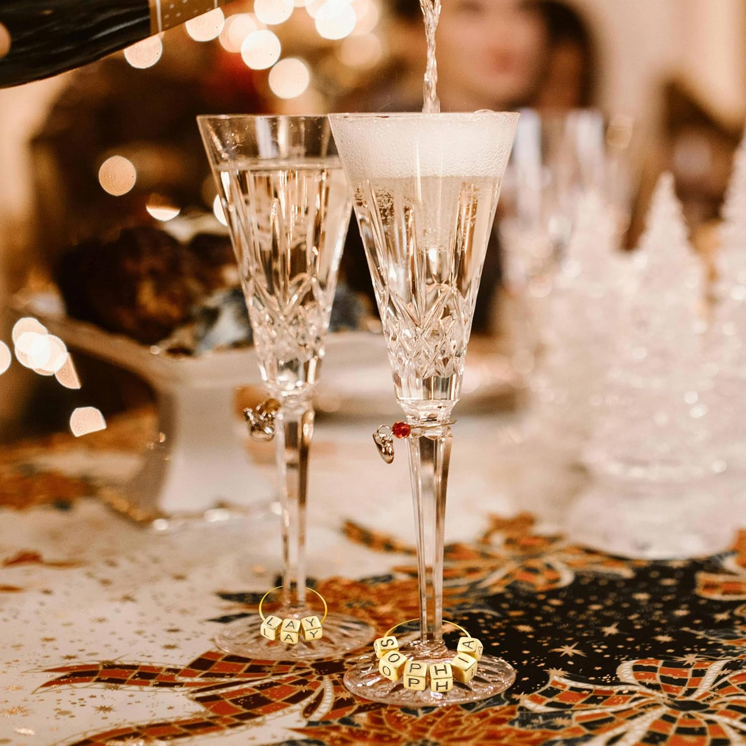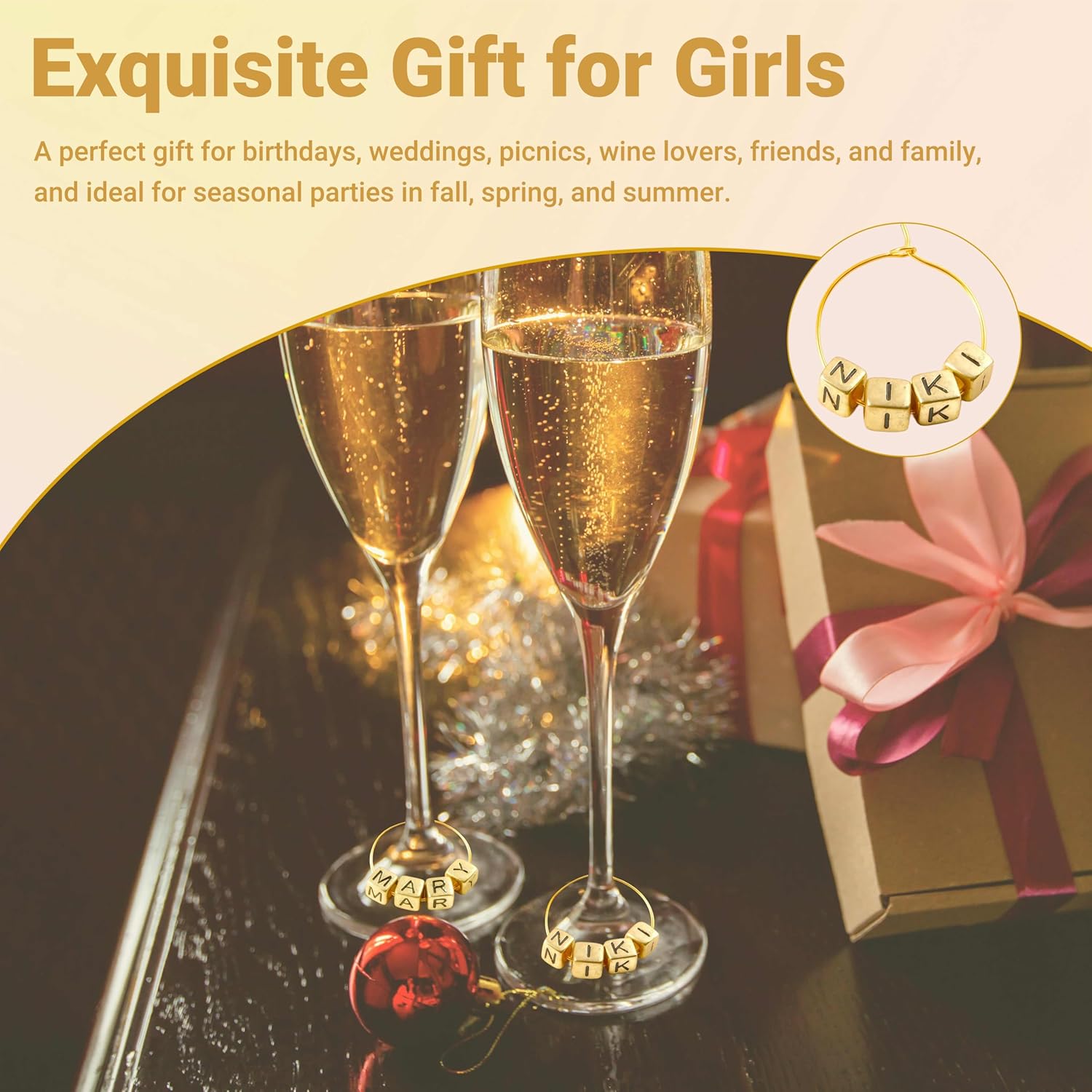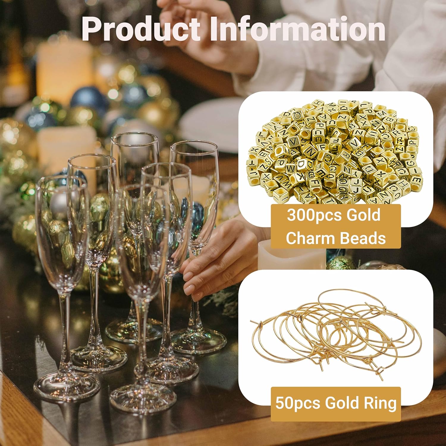 50 Sets Wine Glass Charms, Wine Charms for Stem Glasses, DIY Reusable Drink Markers for Weddings & Bachelorette with Alphabet Beads