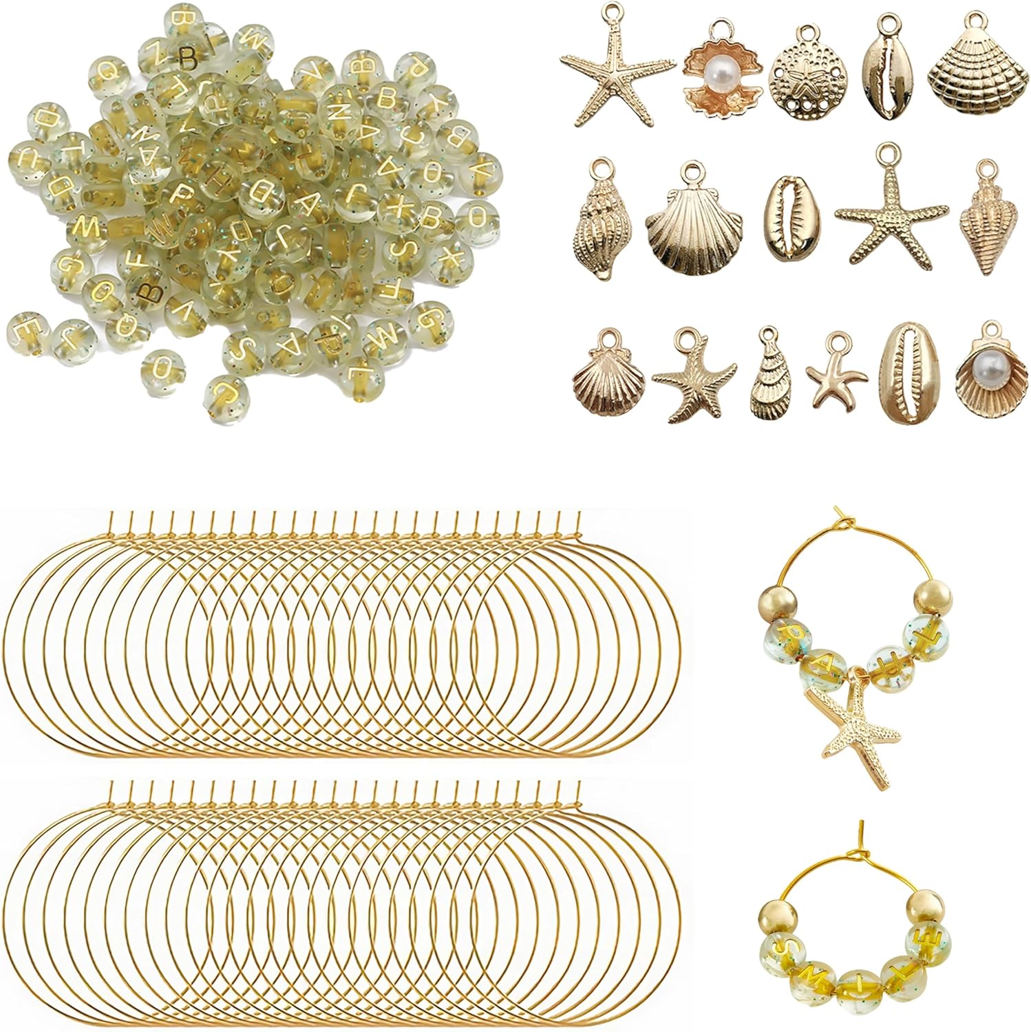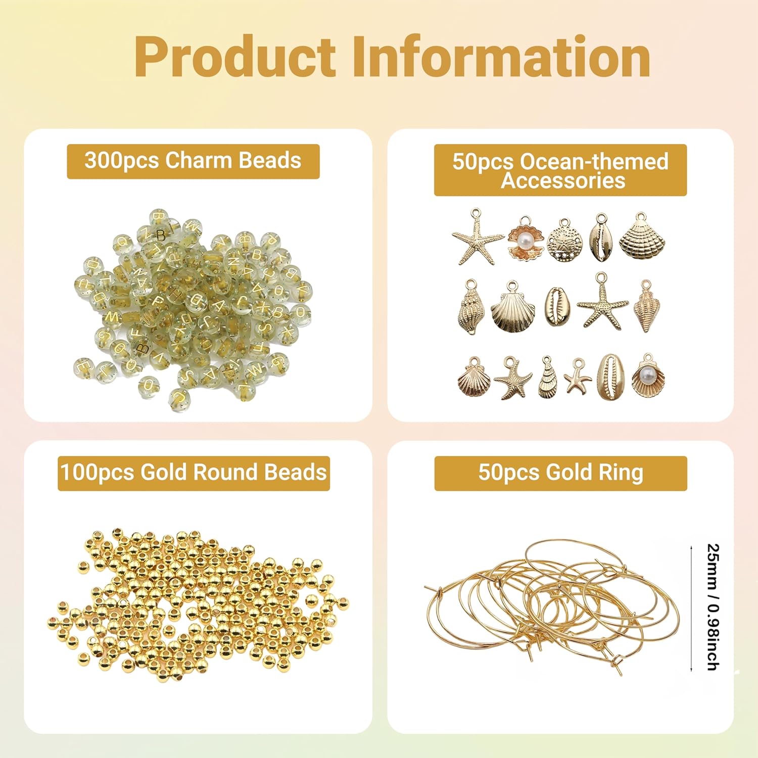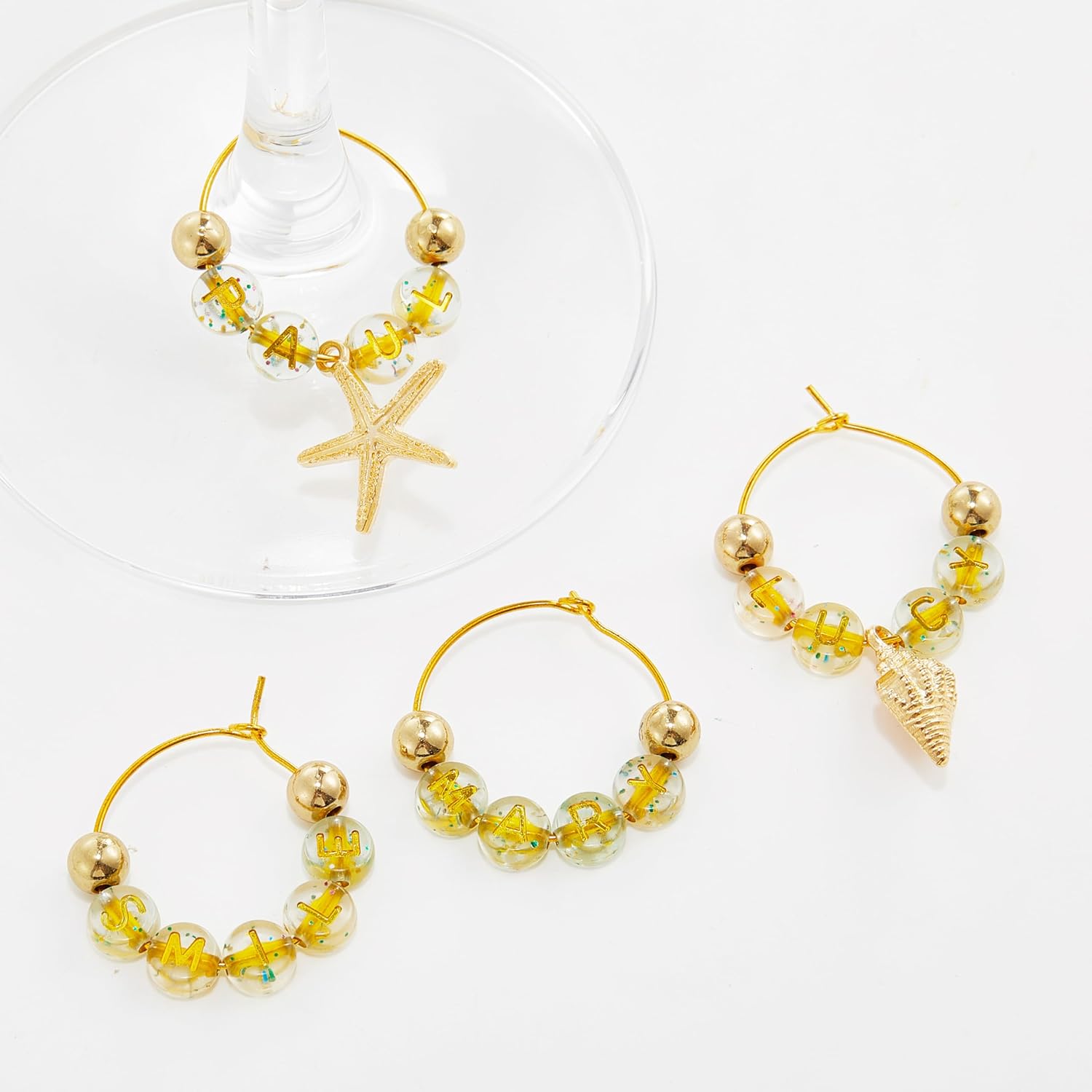 • DIY Wine Charms Kit: Includes 300 transparent gold-toned letter beads for customizing names or phrases, paired with 50 seashell charms and 100 gold-toned spacer beads, allowing you to create personalized wine glass accessories designed for long-lasting use