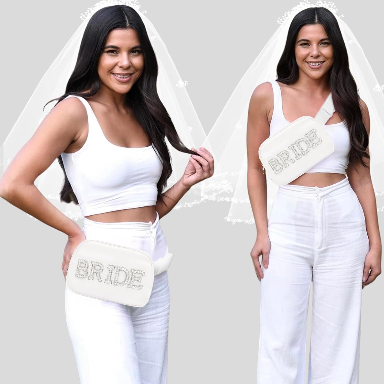 • Bride Gifts Set Size: This bridal fanny pack measures about 9.05" x 6.29" x 2.36". The shoulder straps can be adjusted from 21.25" to 39.37", and the nylon material, renowned for its flexibility, wrinkle resistance and tear resistance, ensures the bag's longevity. It can effectively protect the contents from small raindrops. At the bachelorette party, you don't have to worry at all about your belongings getting lost. Moreover, it is the best bride gift for the bride.