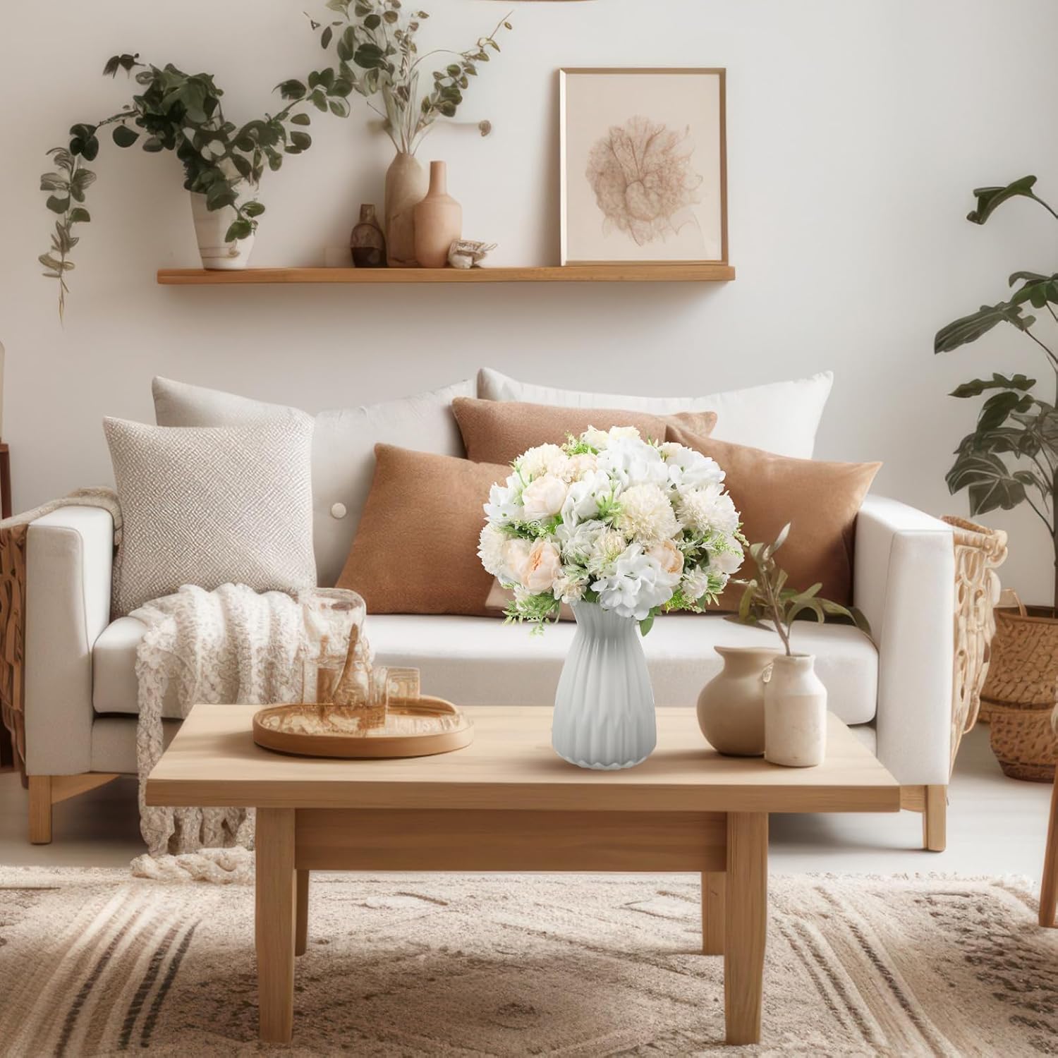 Tigeen Artificial Flowers Artificial Peonies Silk Flowers Faux Peony Fake Peony Silk Hydrangea Bouquet for Wedding Table Centerpiece Floral Vase Decor(White,24 Bundles)