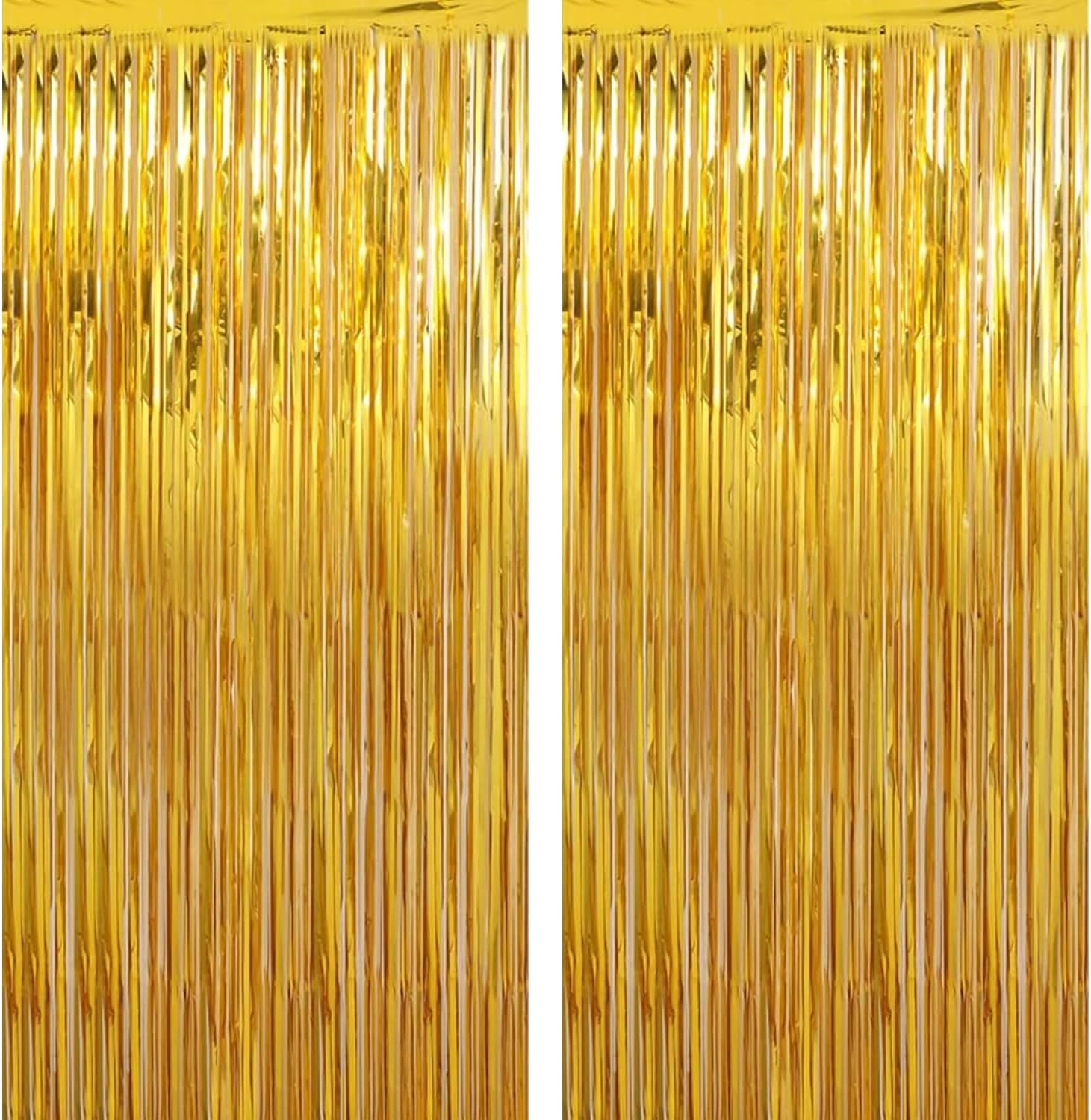 2 Pack Gold Streamers Party Decorations Gold Tinsel Backdrop Supplies Foil Curtain Backdrop for Baby Shower Birthday Bachelorette Wedding Engagement Holiday Celebration Party Decorations
