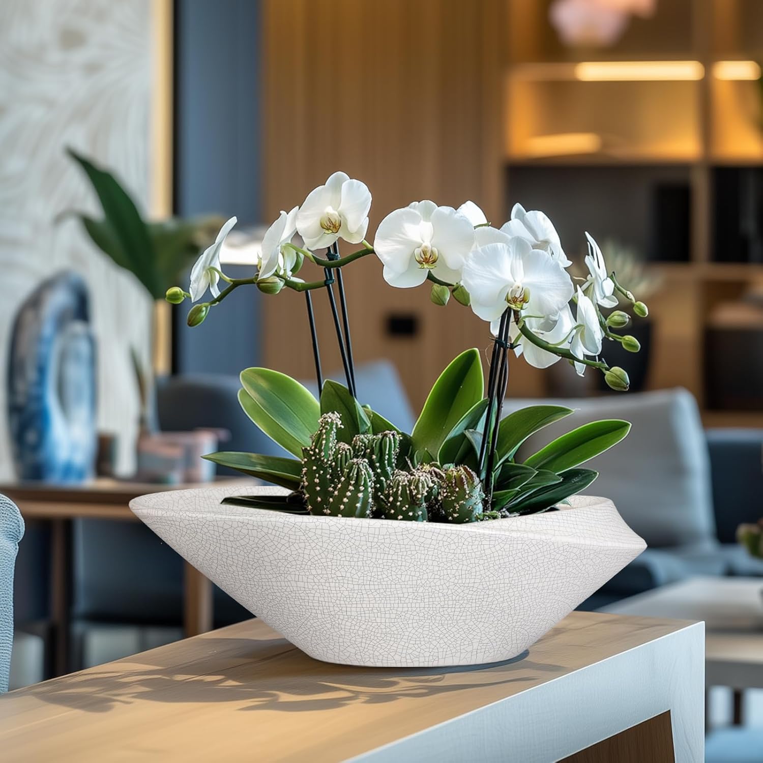 • 12 Inch Pots for Plants for Home Decor: Modern succulent pots are fit for various home decor and garden decor, white plant pot is ideal choice for decorating living rooms, tabletops, windowsills,balconies, patio, offices, porch, kitchens, desk, apartment, garden and more