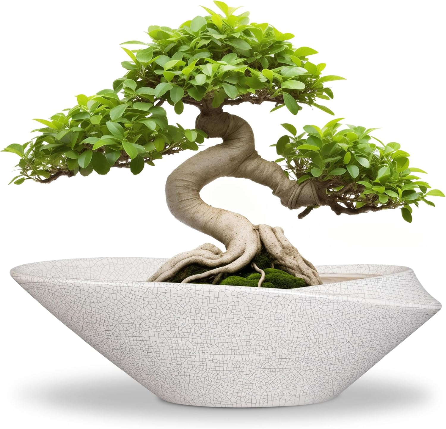 • Dimensions: These ceramic bonsai pots pit measures 12.01" x 7.36" x 3.94". The bonsai planter suitable for a variety of plants, such as bonsai, pine trees, money tree, succulent, cactus, aloe vera, orchid, ficus, bamboo, herbs and more