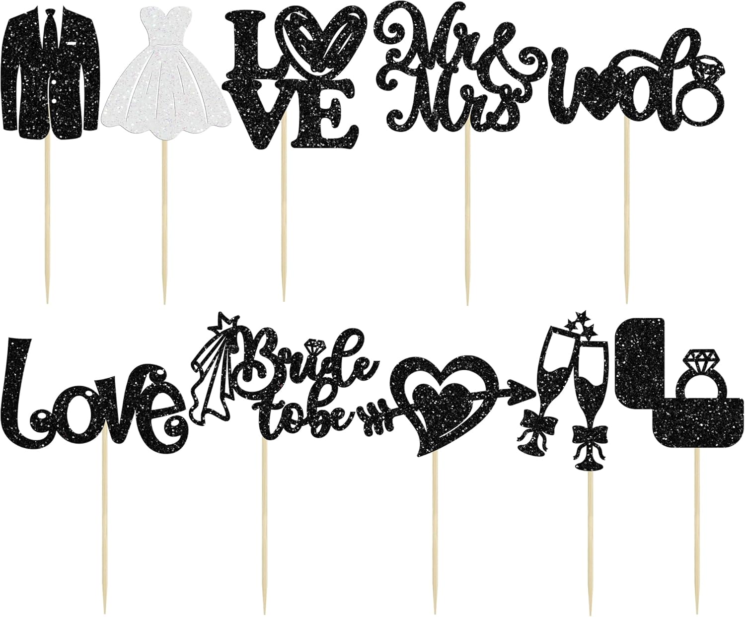 Ephlyn 30Pcs Bride to be Cupcake Toppers Glitter Wedding Cake Topper Decorations I Do Love Heart Ring Cupcake Picks for Bridal Shower Wedding Engagement Party Supplies Black