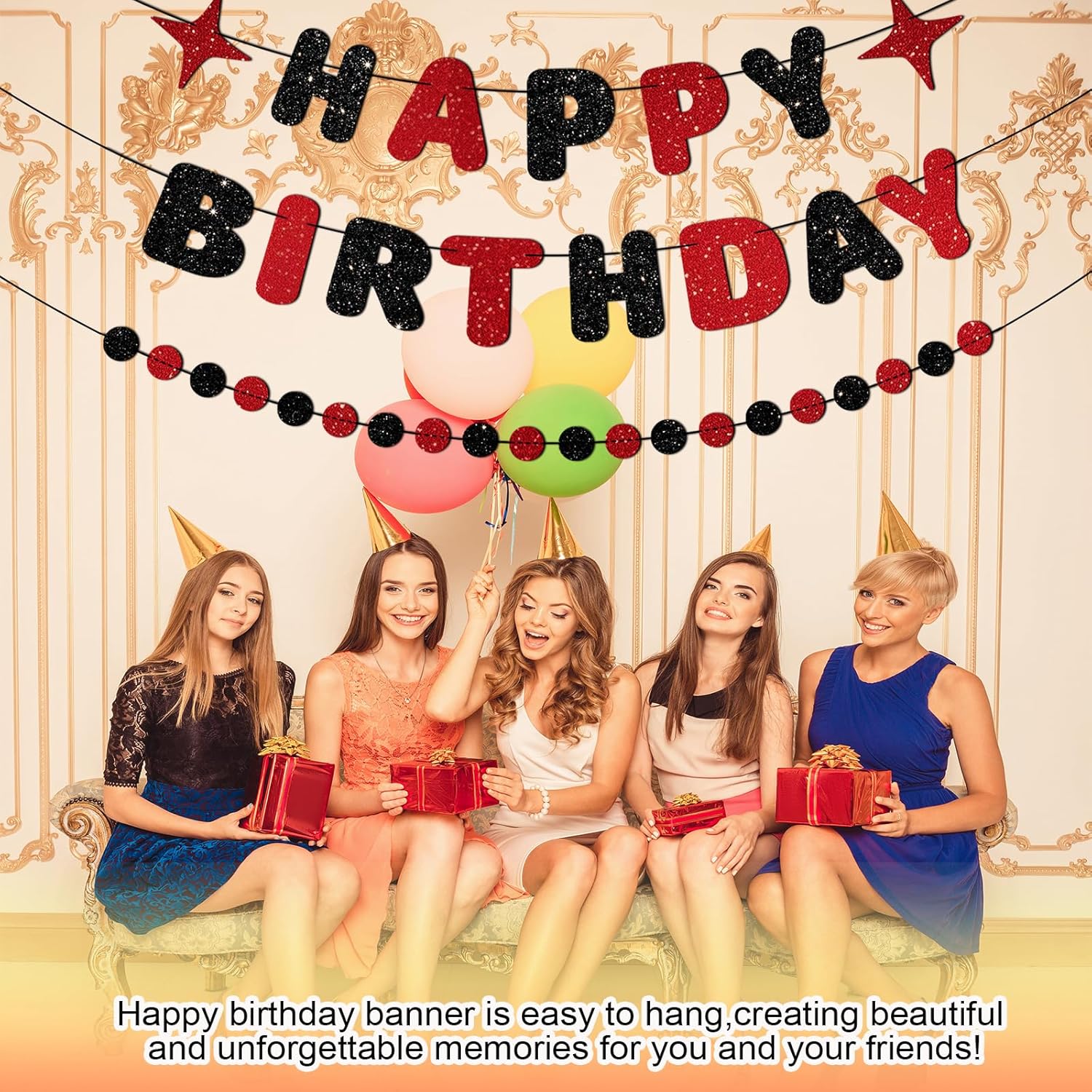• PRE-STRUNG | NO DIY:Our red and black birthday banner will arrive to you with each letter already pre-strung on a 10 ft strand,you don't have to fuss over assembly.It is easy to hang the happy birthday sign.The birthday banners are large enough for birthday party decorations,birthday decorations red and black and any other birthday decor.
