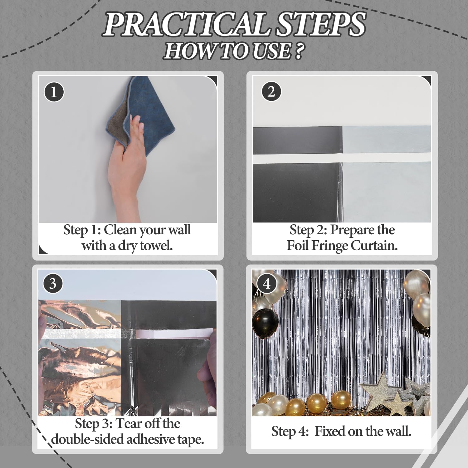 • 【Easy and Convenient Installation】These foil fringe curtains are easy to install and can be quickly hung on smooth surfaces using the included double-sided adhesive tape. No extra tools or materials required.