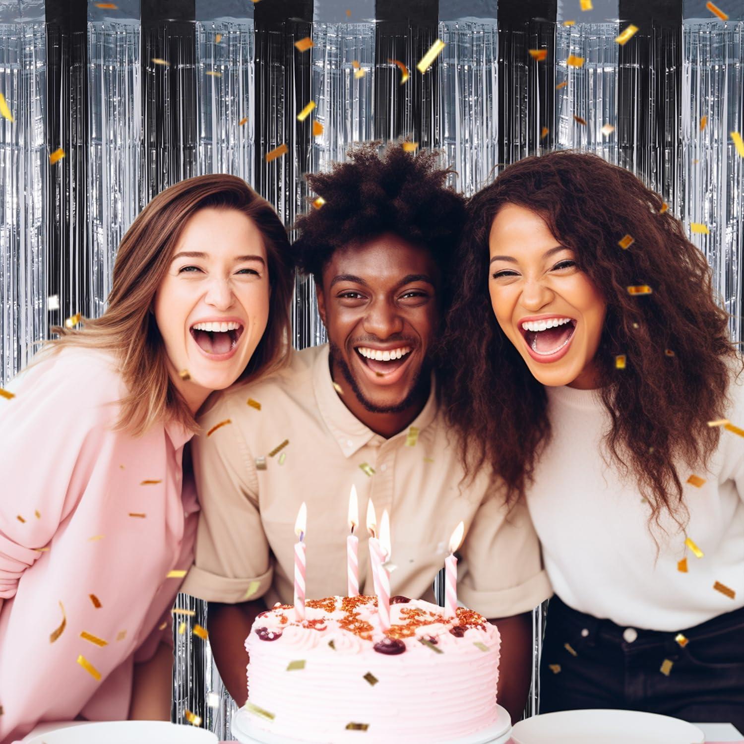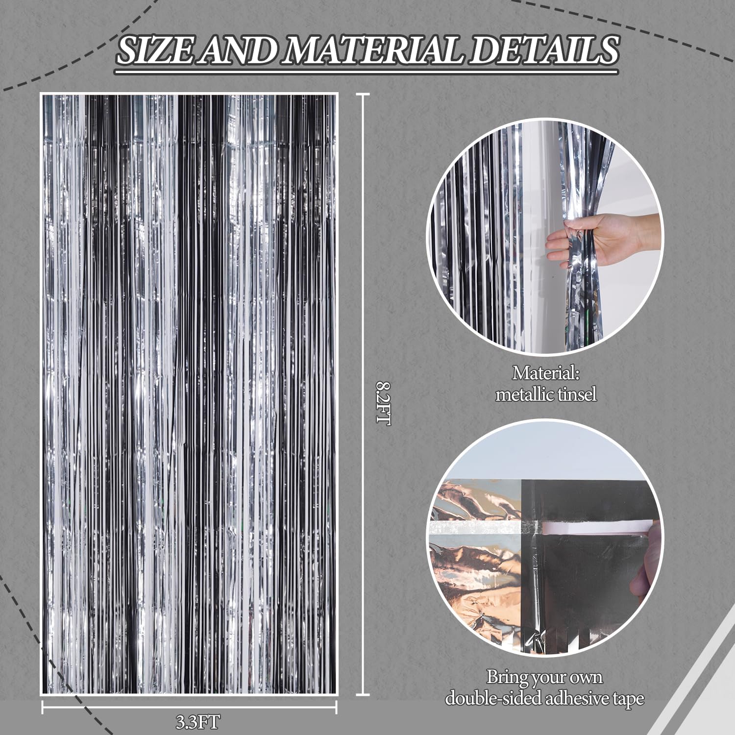 3 Pack Foil Fringe Backdrop - Black&Silver Shiny Tinsel Curtains for Party Decoration/Photo Booth Props - 3.3x8.2 FT Metallic Foil Backdrop for Birthday, Wedding, Graduation, Christmas.