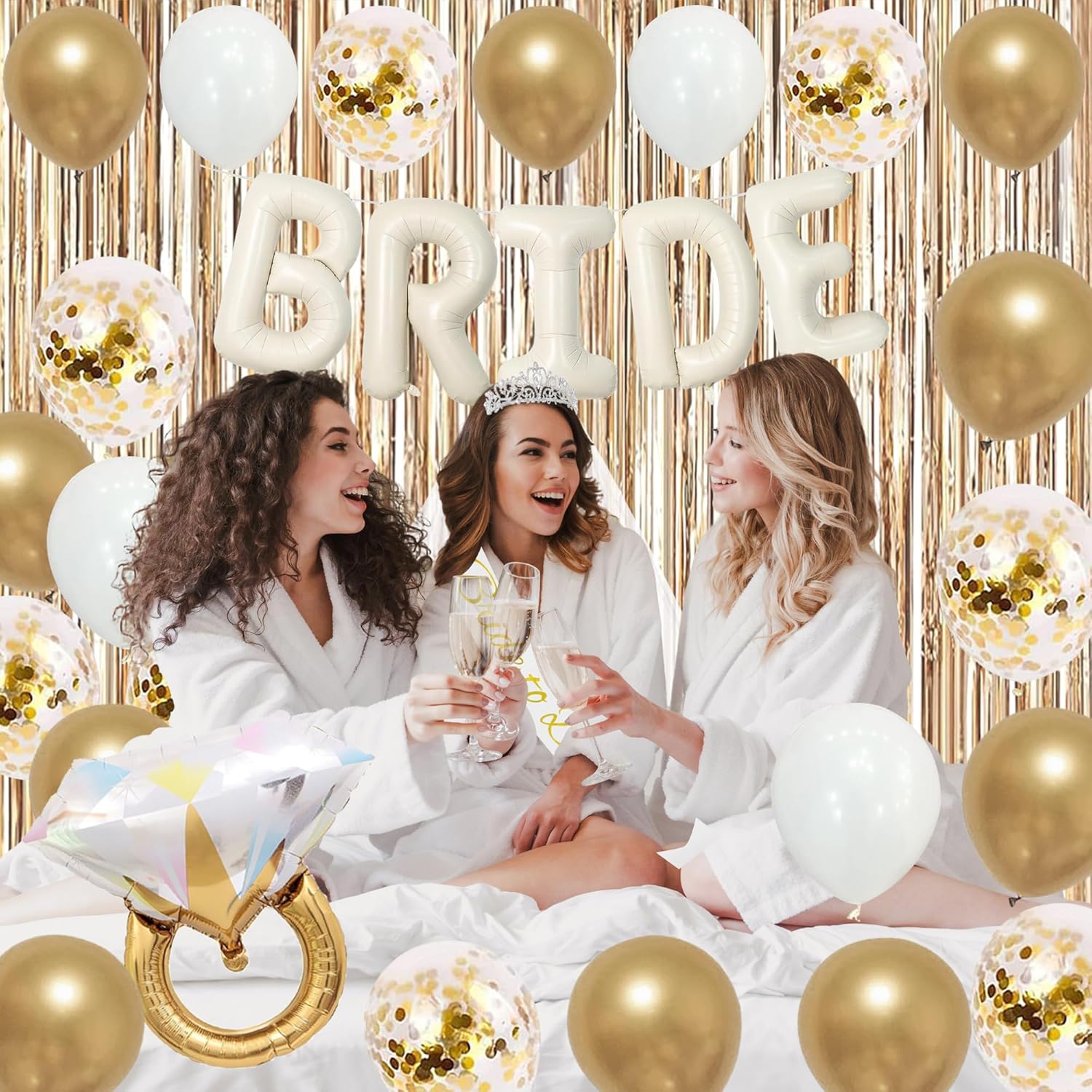 • [Quality Bachelorette Party Decorations] Each set of bride to be champagne gold birthday decorations are carefully checked to ensure the following: Quality balloons are long-lasting, won't burst easily, no unpleasant holes or odors, use air and helium. No more misspelled Bride to Be white gold banner and poor quality balloons! Every women will have a happy bachelorette party.