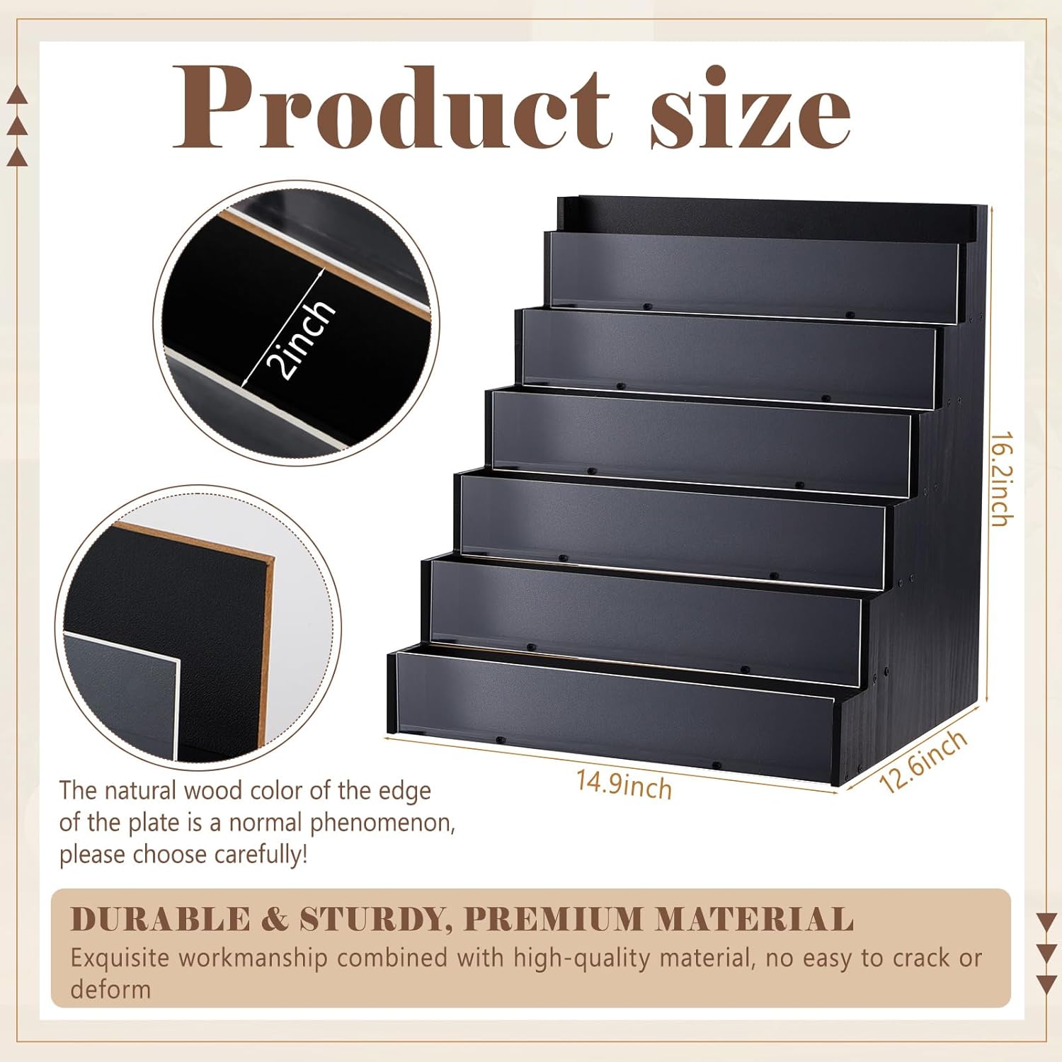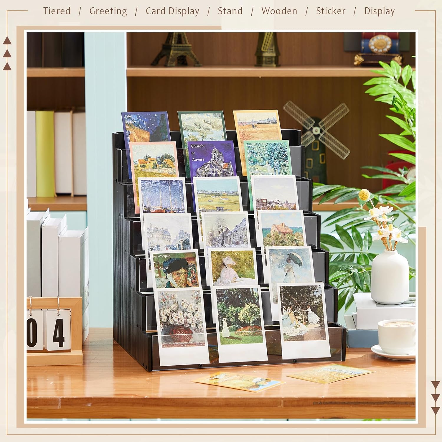 6 Tier Greeting Card Display Stand Black Bamboo and Acrylic Sticker Display Stand Trading Card Holder Retail Photos Shelf for Vendors Craft Collection & Show