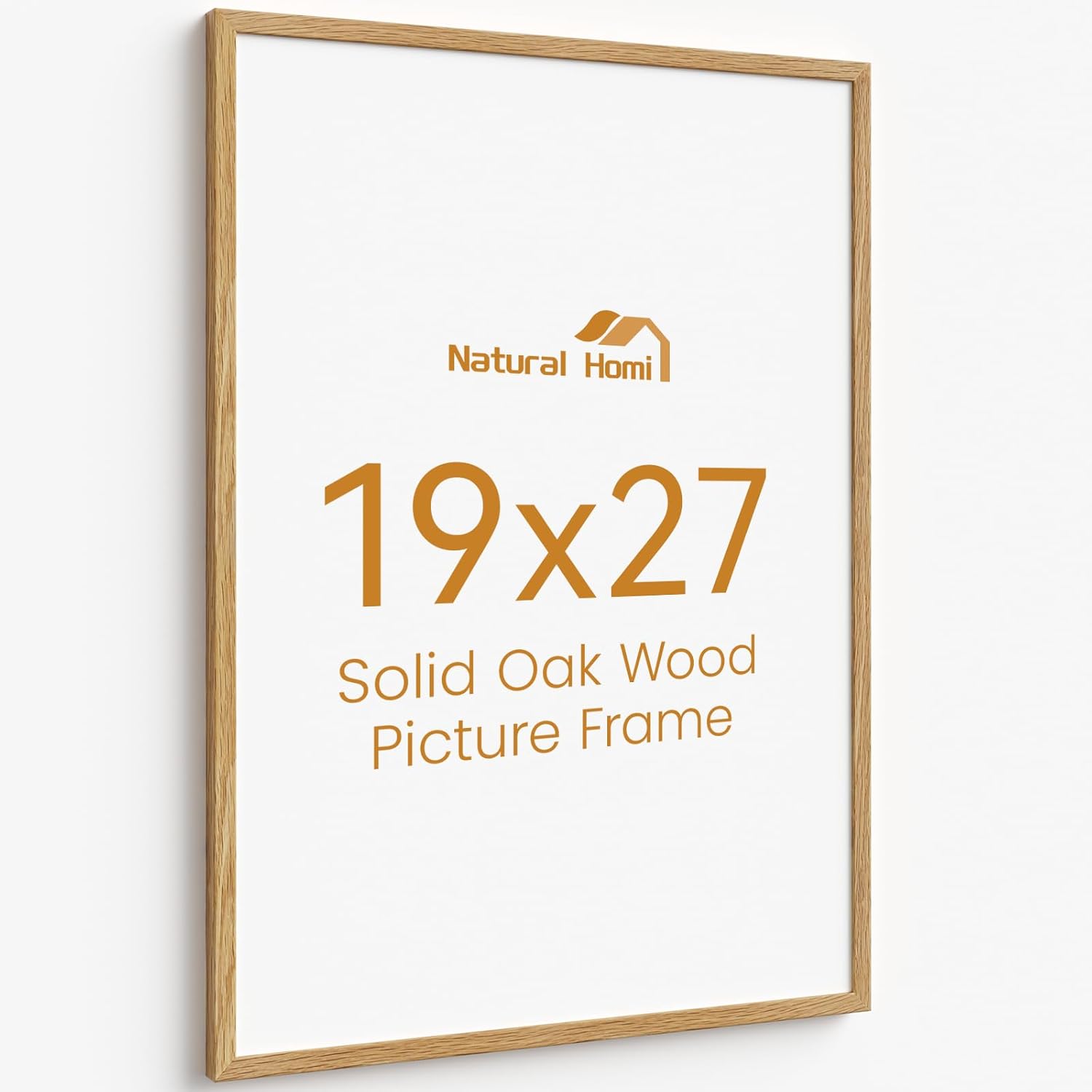 19x27 Picture Frame Oak Wood,19"x27" Natural Oak Color Wooden Frames with Tempered Glass,27x19 inch Wall Gallery Poster Frame with No Mat,19 by 27 Frames Horizontal and Vertical for Wall Mounting