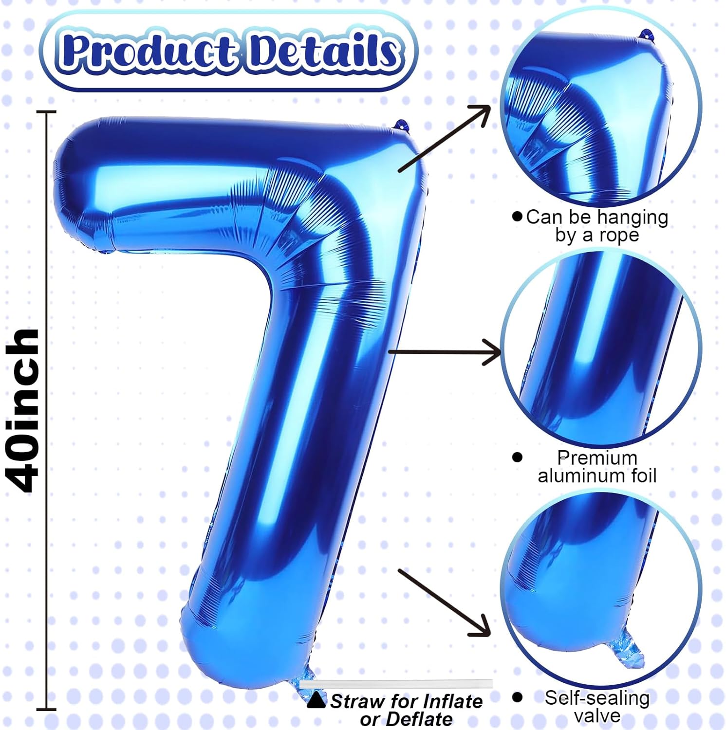• Navy Blue Number 7 Balloon 40 Inch: Includes 1pc 7 balloon and a straw for easy inflation and deflation. This helium balloon is perfect for birthdays, anniversaries, or special occasions like a 7th, 17th, 27th, or 70th celebration