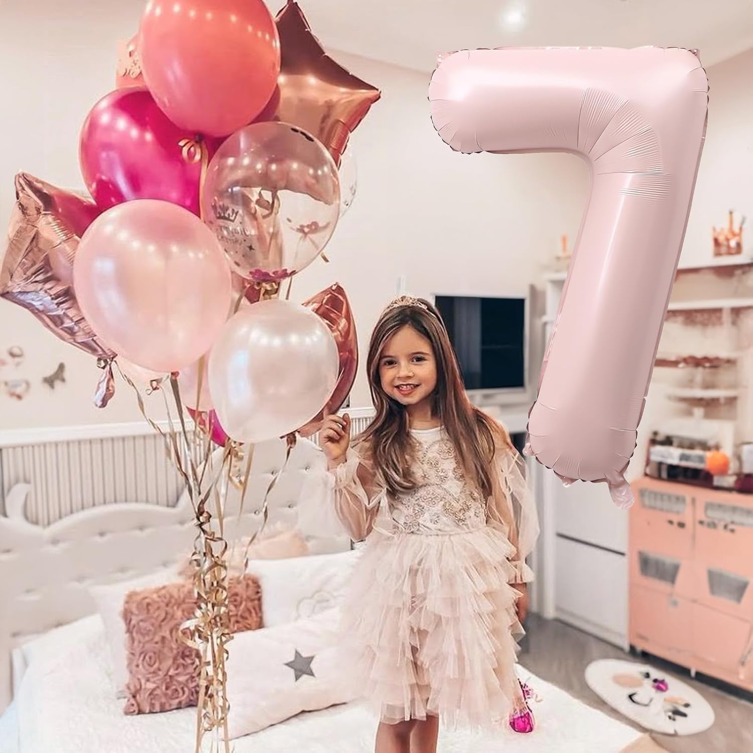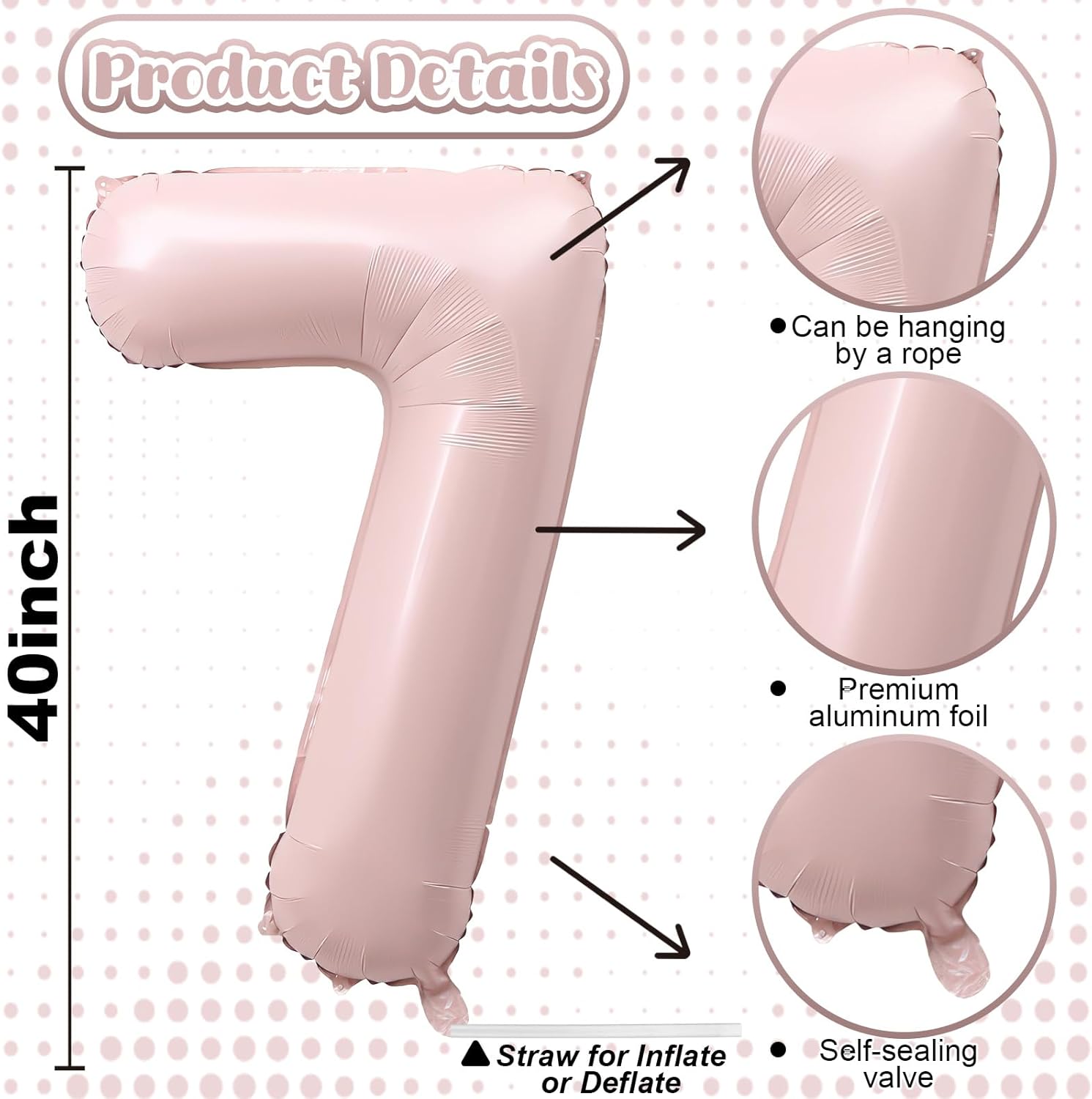 • Baby Pink Number 7 Balloon 40 Inch: Includes 1pc 7 balloon and a straw for easy inflation and deflation. This helium balloon is perfect for birthdays, anniversaries, or special occasions like a 7th, 17th, 27th, or 70th celebration