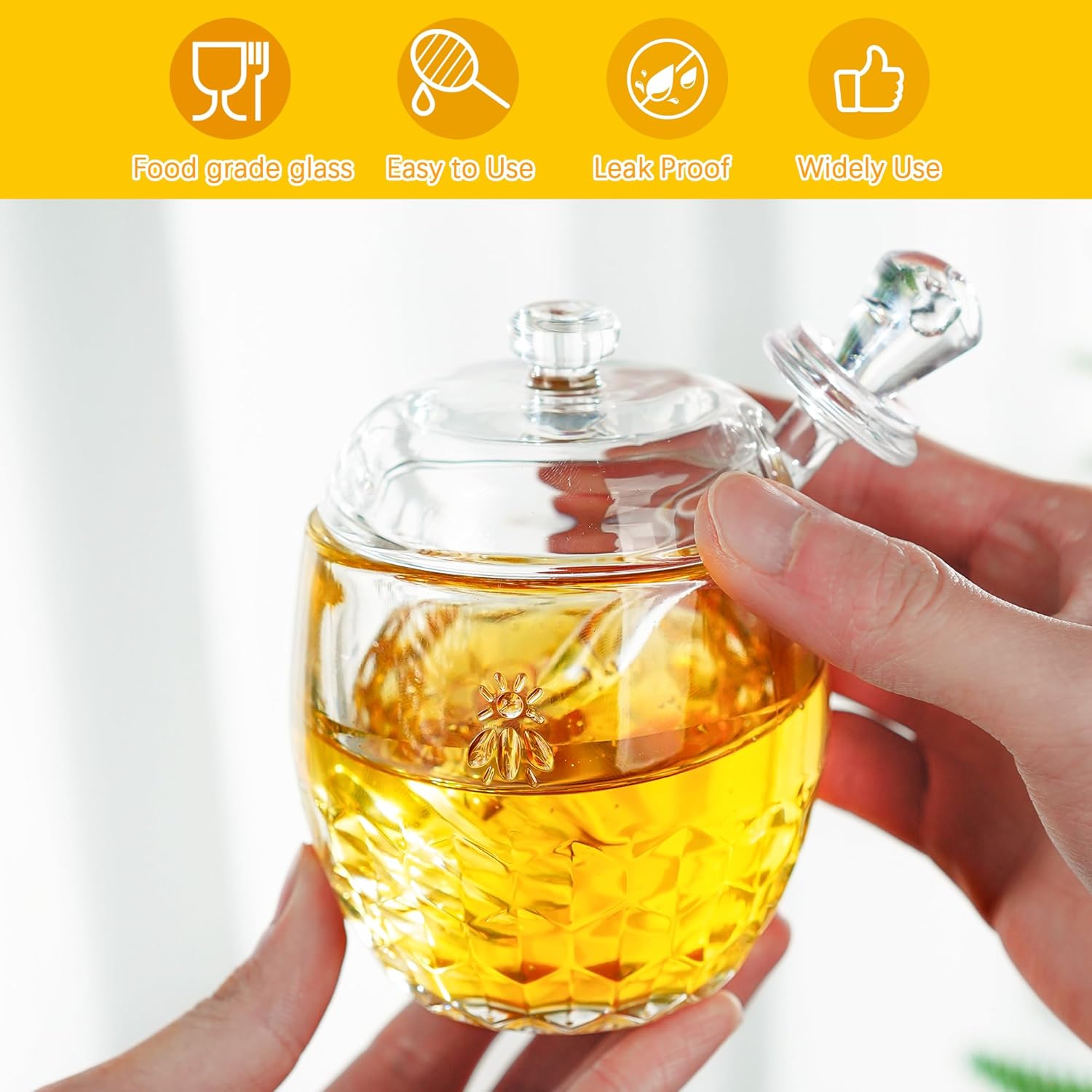 • Transparent Design: Crystal-clear glass allows you to easily monitor honey levels. With a generous 7.5-ounce capacity, this glass honey jar ensures you always have plenty of honey on hand for sweetening your favorite beverages and dishes
