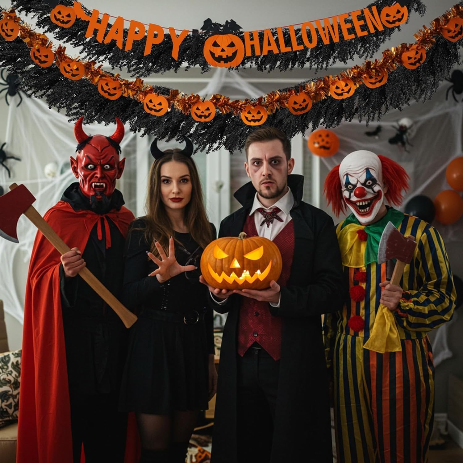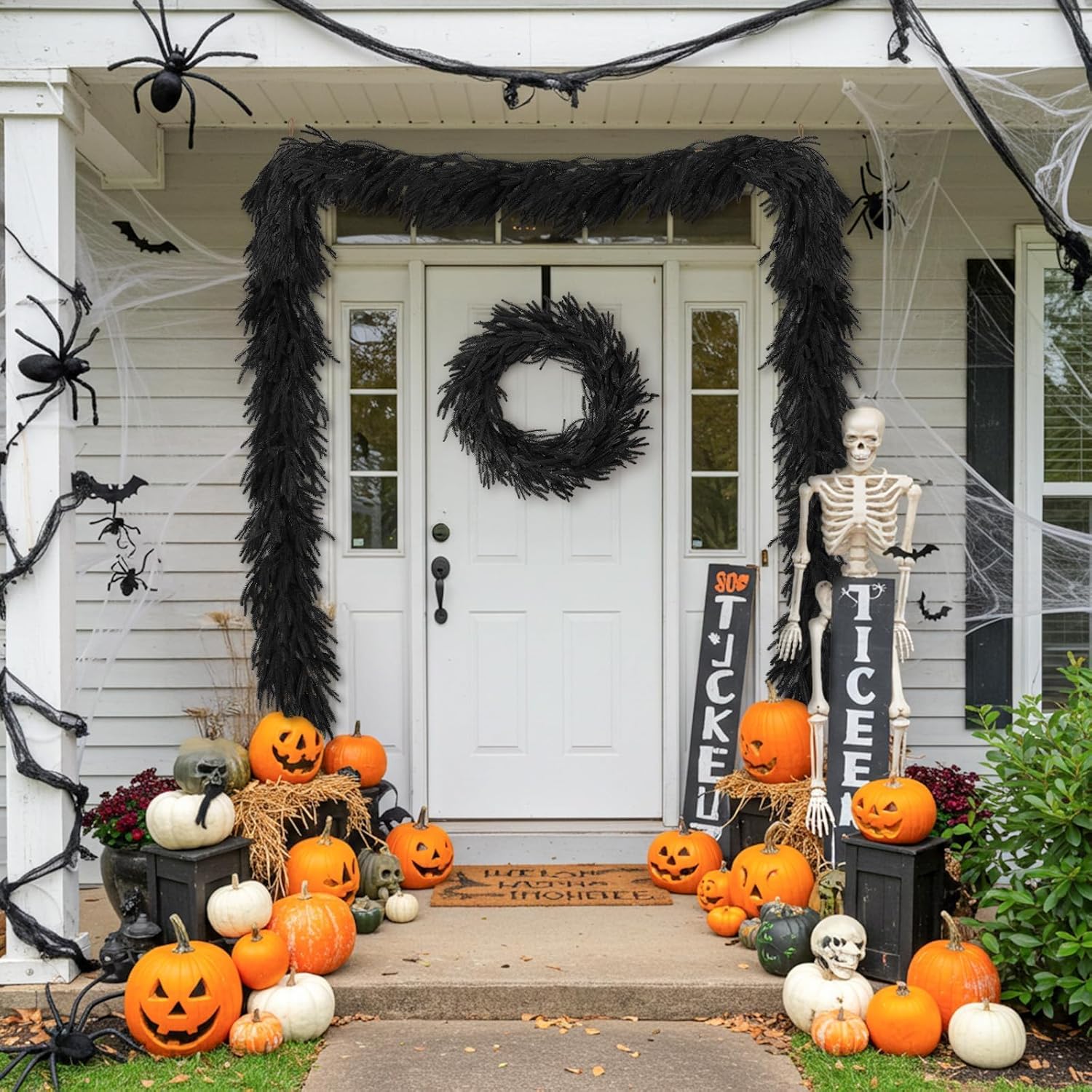 • Unique Design: Black is the classic Halloween theme color. Norfolk Pine garland is a unique and innovative design that perfectly blends into the mysterious and terrifying atmosphere of Halloween. And there's no need to spend time on maintenance, Halloween black garland are always fresh and won't rot