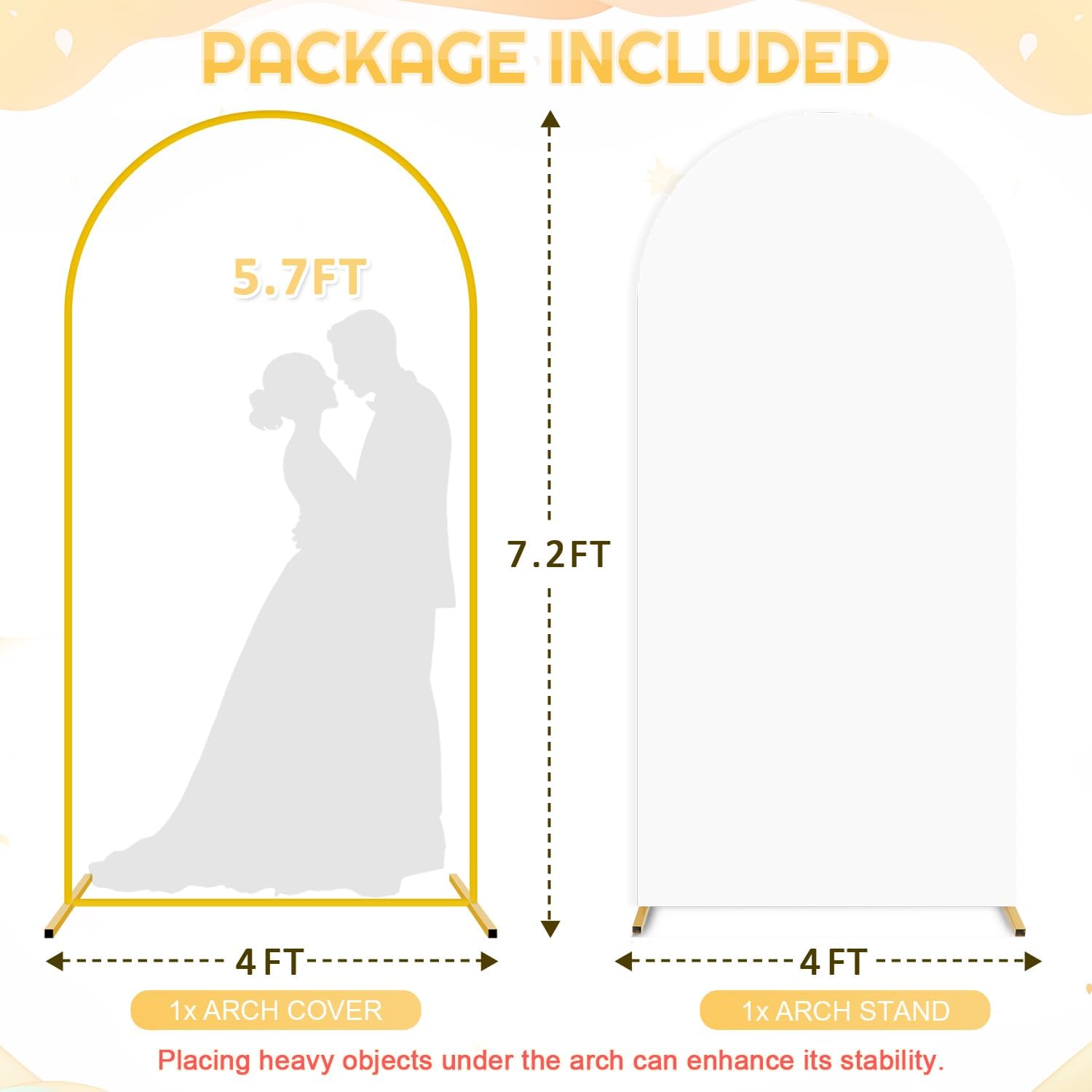 • 🥂【Package Included - 7.2FT Arch Backdrop Stand】You will receive 7.2FT gold party arch backdrop stand and the same size 7.2FT white spandex arch backdrop cover. Let's create unforgettable moments with our backdrop arch stand!
