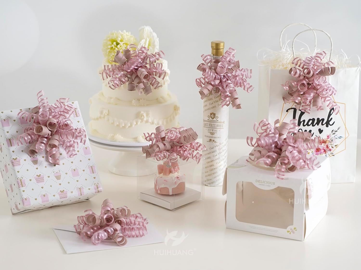 • SIZE & PACK: Each package contains 8 pcs dusty rose curly bows, and made from 12 strands of 3/8" wide grosgrain and sheer satin ribbon that adds a airy, elegance and luxurious feel to any gift or decoration. Bows measures 5"~5.5" wide