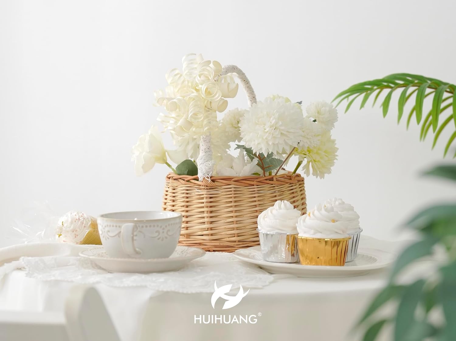HUIHUANG Gift Wrapping Bows Gift Wrap Accessory Ivory Curly Ribbon Bow 5 inch x 8 Counts Stick On Bows for Presents, Paper Bag, Party Favors, Bridal Shower Wedding Decoration