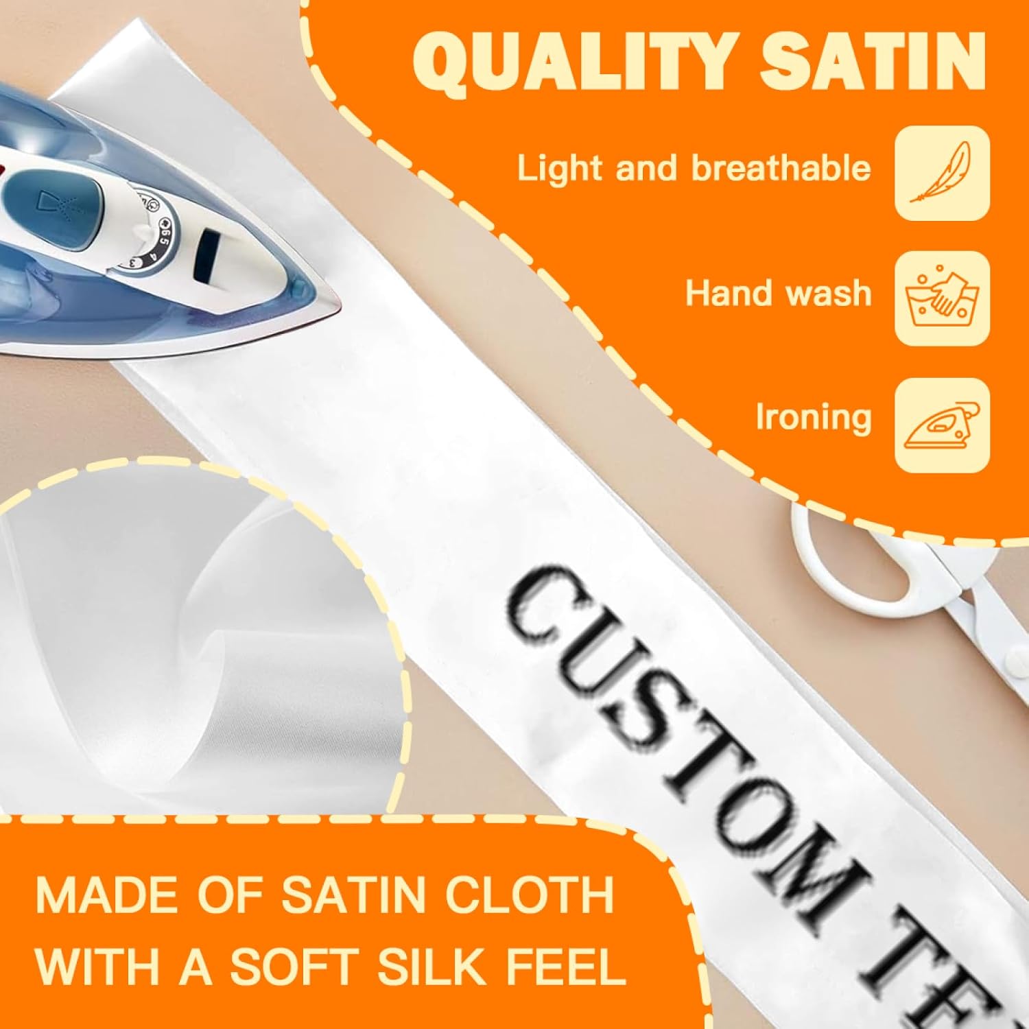 Custom Sash,Personalized Birthday Sash with Text Photo,Customized Bachelorette Sash Quote Sash Bride to Be Sash Color Optional (No decorative edge, White)