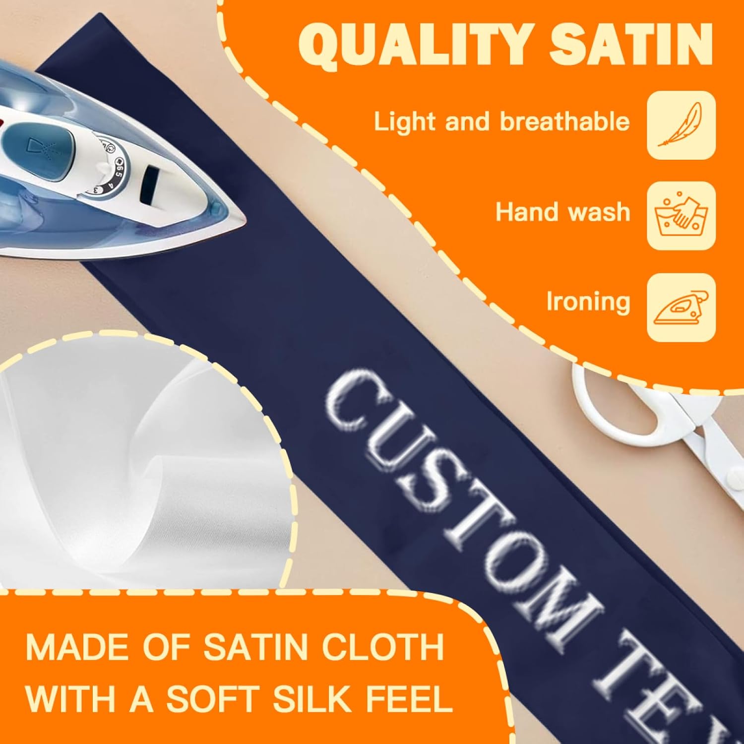 • Custom Sashes:this is a customizable sash.You can upload your favorite photos,pictures,text,logo.then you can get a unique and personalized sash.