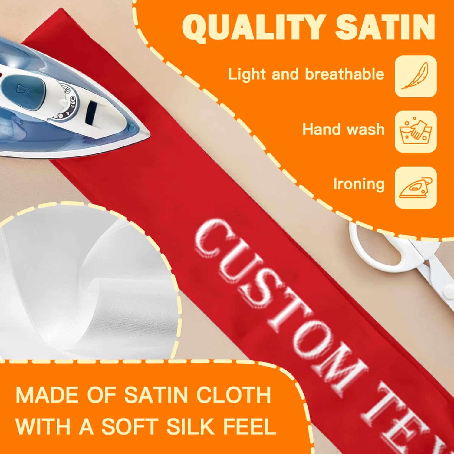 • Custom Sashes:this is a customizable sash.You can upload your favorite photos,pictures,text,logo.then you can get a unique and personalized sash.