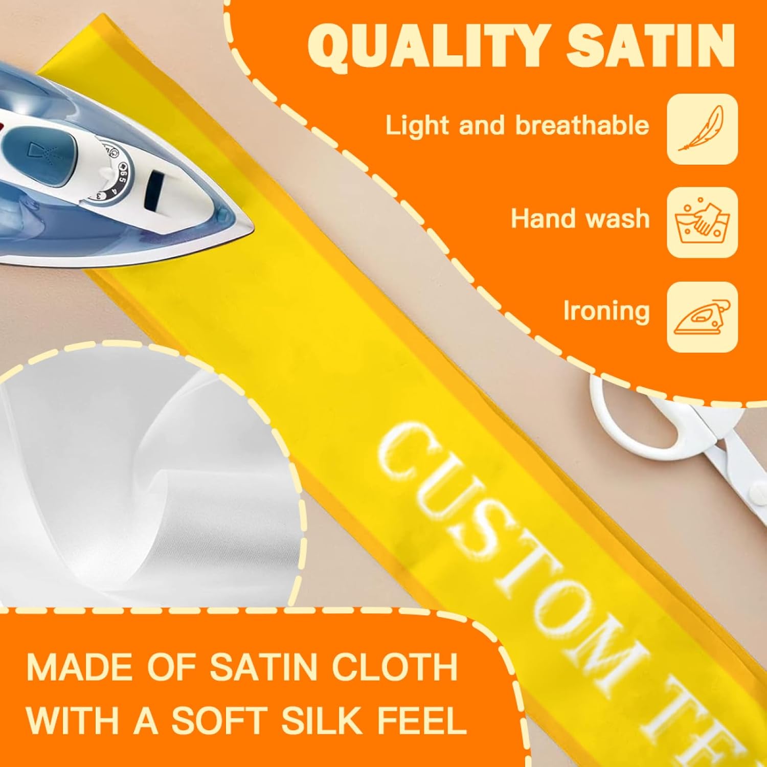 • Custom Sashes:this is a customizable sash.You can upload your favorite photos,pictures,text,logo.then you can get a unique and personalized sash.