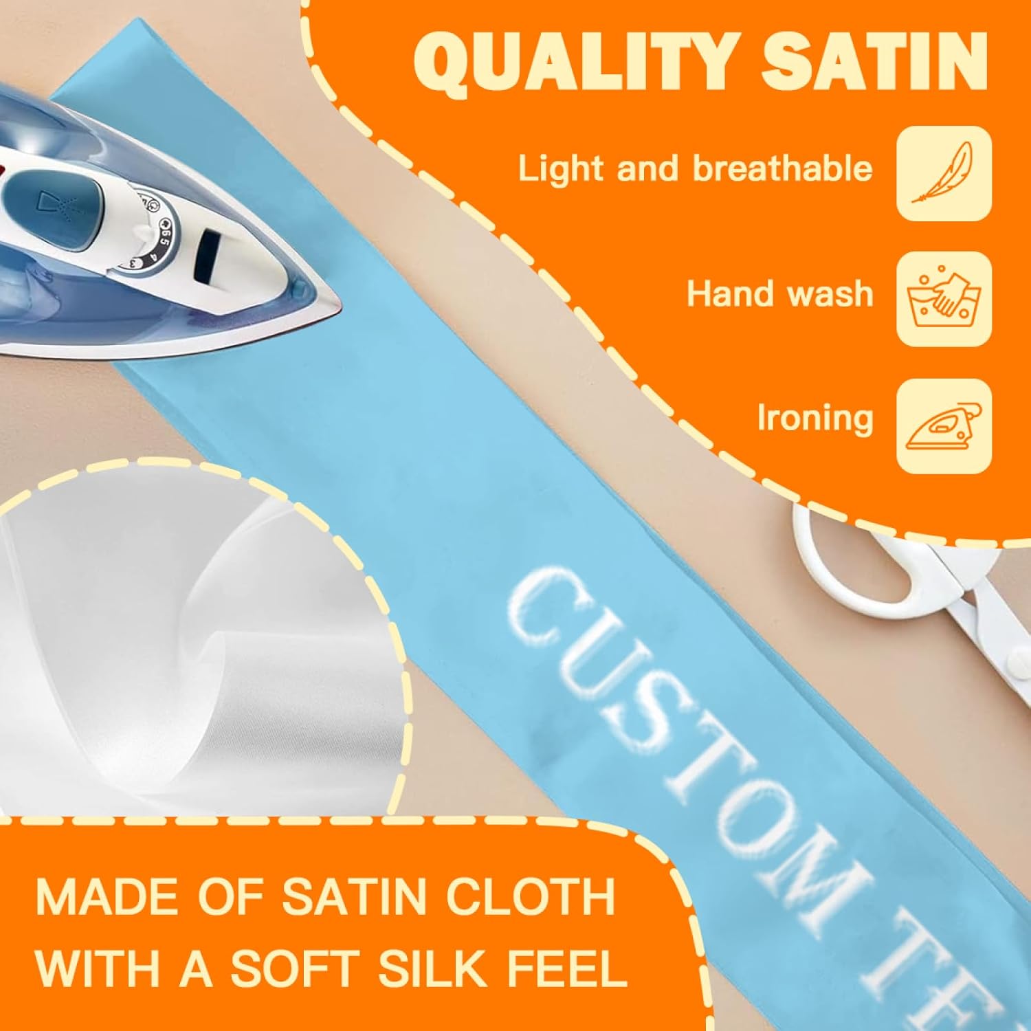 • Custom Sashes:this is a customizable sash.You can upload your favorite photos,pictures,text,logo.then you can get a unique and personalized sash.