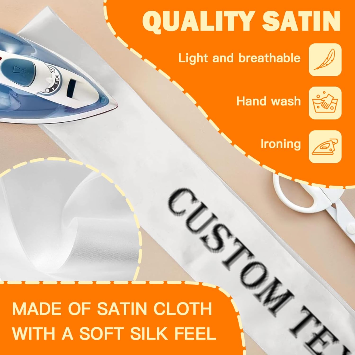 • Custom Sashes:this is a customizable sash.You can upload your favorite photos,pictures,text,logo.then you can get a unique and personalized sash.