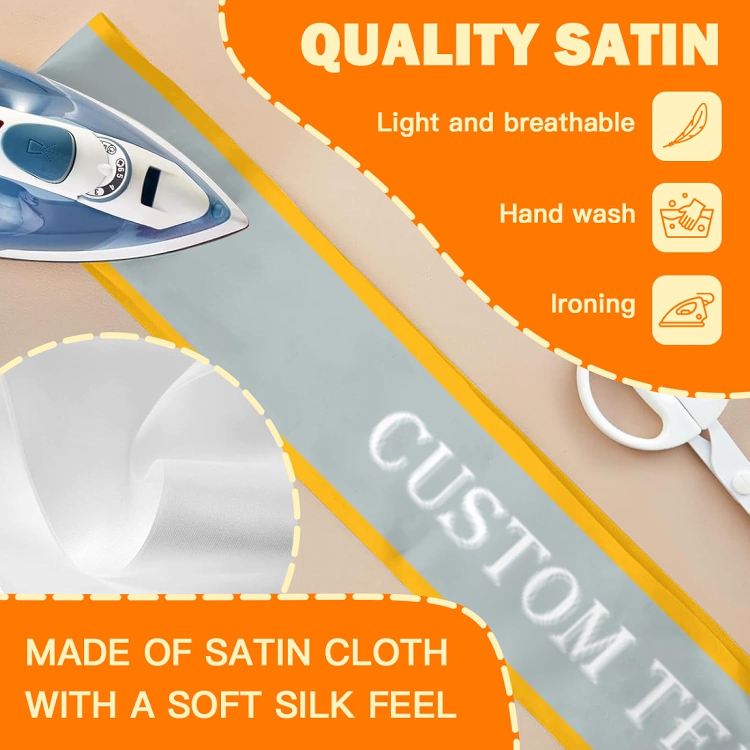 • Custom Sashes:this is a customizable sash.You can upload your favorite photos,pictures,text,logo.then you can get a unique and personalized sash.
