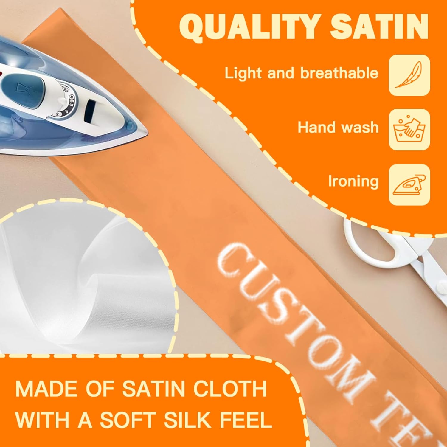 Custom Sash,Personalized Birthday Sash with Text Photo,Customized Bachelorette Sash Quote Sash Bride to Be Sash Color Optional (No decorative edge, Orange)