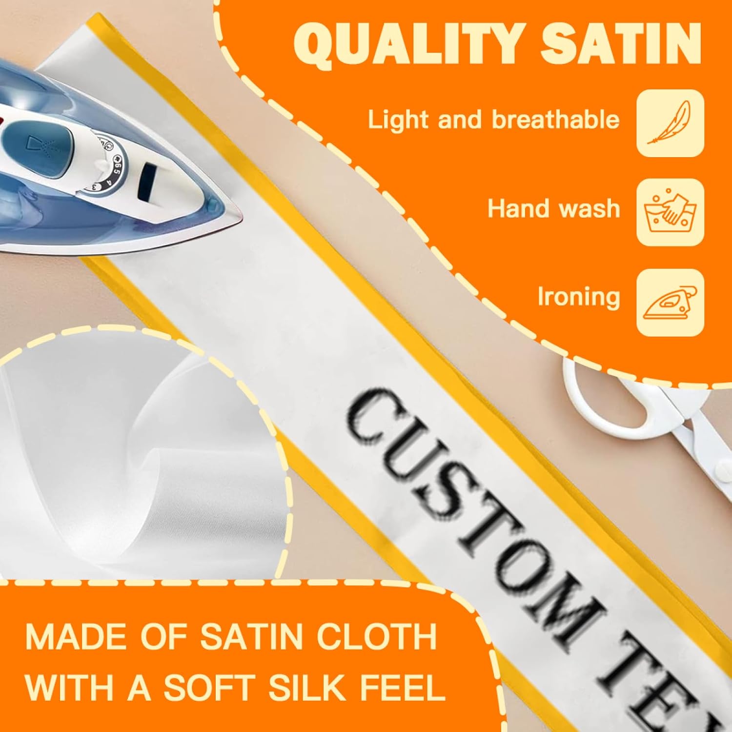 • Custom Sashes:this is a customizable sash.You can upload your favorite photos,pictures,text,logo.then you can get a unique and personalized sash.