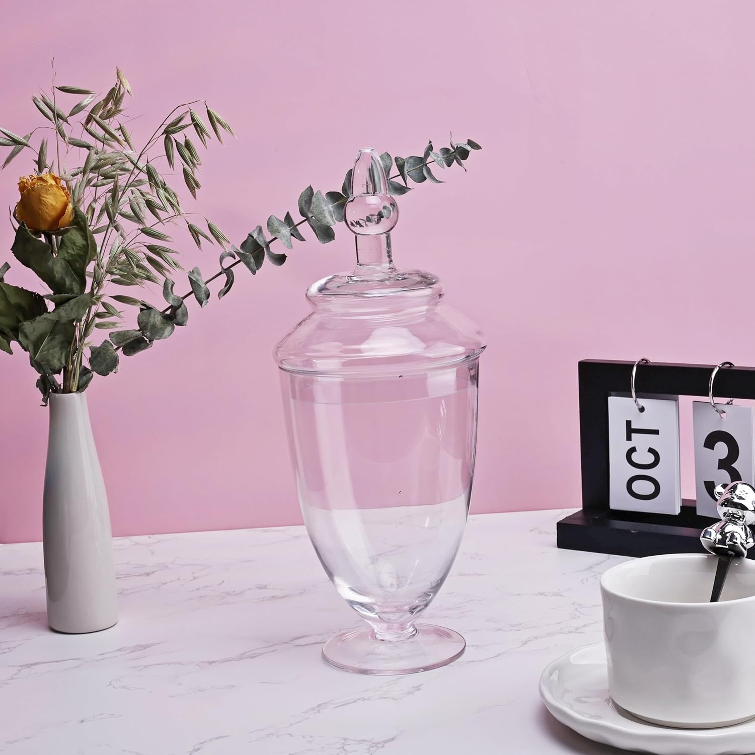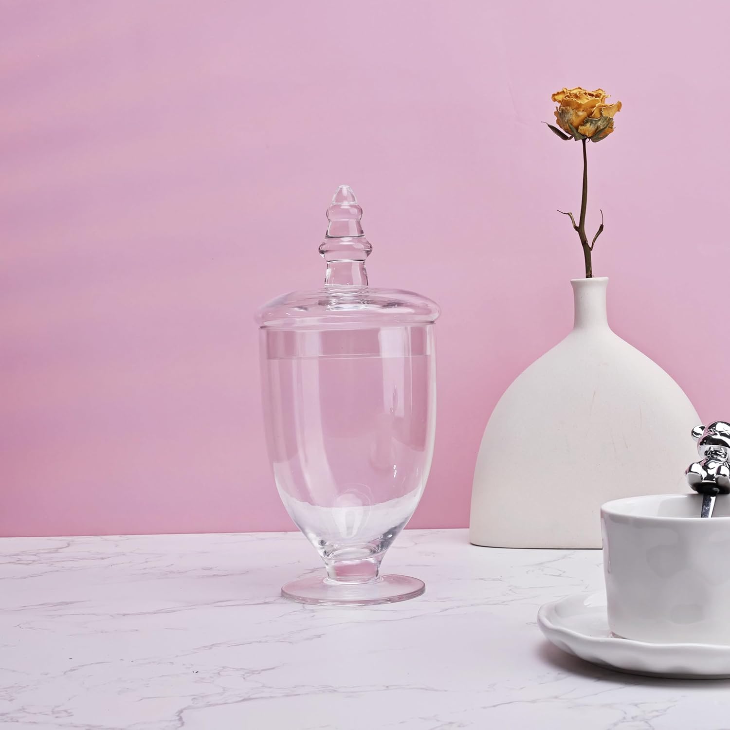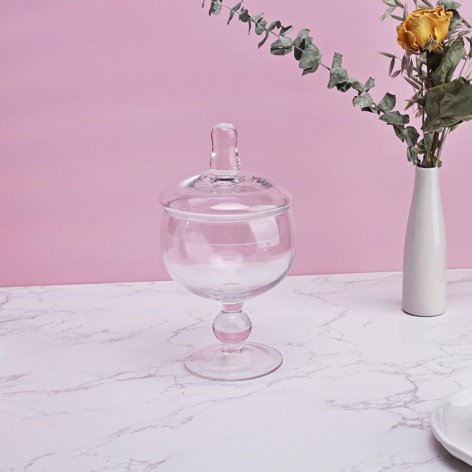 • MODERN ELEGANCE: These glass apothecary jars with lid are perfect for a variety of settings, from bathroom and kitchen storage, to home and venue decoration, garden floral and glass container displays and more. The uses for these decorative glass jars are endless!